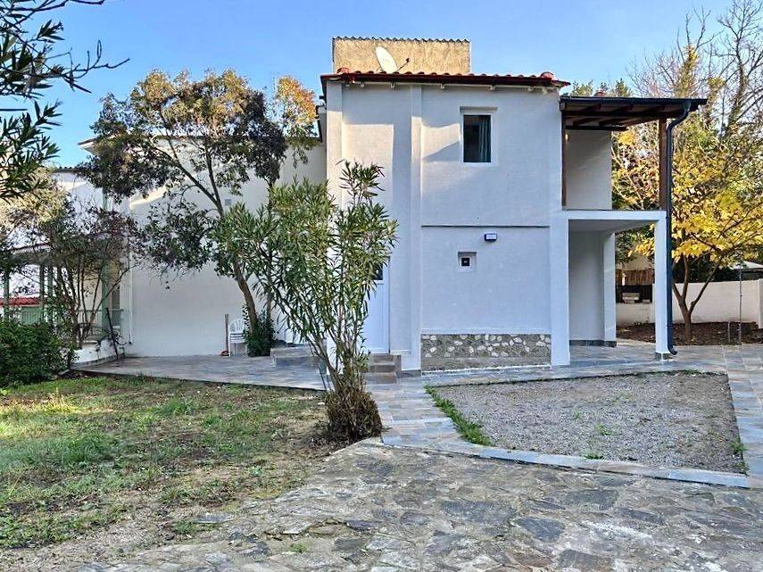 DETACHED HOUSE FOR SALE IN AGIA TRIADA, THERMAIKOS – FULLY RENOVATED A fully renovated and luxurious 145 m² detached house on a 500 m² plot is available for sale in Agia Triada (Thermaikos), just **80 metres from the sea**! Renovated in 2025, ideal for a family seeking luxury, comfort and absolute beachfront proximity, in a quiet residential area with easy access to the airport and Thessaloniki. The renovation includes: - New roof - New insulation (15 cm) - New solar boiler - New electrical installation (from the meters onwards) - New water pipes (from the water meter onwards) - New waste pipes - New fitted kitchen - New fitted wardrobes - New walls - New central heating - New inverter air conditioners - 4 bedrooms, 3 bathrooms (all with Italian tiles and bathroom accessories) - Fully furnished with luxurious furniture, custom-made wardrobes and kitchen! - Motion sensor lights around the house and garden - All new furniture and electrical appliances included! The property is a corner plot, cross-ventilated, with southeast orientation, synthetic window frames with double glazing, tiled & laminate floors, **underfloor heating**, air conditioning, fireplace , solar water heater, internal staircase and is **fully furnished**. Ground Floor ️ Spacious and bright open-plan area combining living room, dining area and kitchen – perfect for family moments and entertaining. The large windows flood the space with natural light and offer wonderful views of the garden. Includes one bedroom, a bathroom and storage room. First Floor ️ Three comfortable bedrooms with access to verandas. Additional bathroom. All spaces are bright, airy and provide peace and comfort. Outdoor Spaces A real paradise on a full 500 m² plot with a private garden, lush vegetation and verandas. Features parking space , access for people with disabilities and stunning views. Perfect for relaxing right by the sea! This detached house perfectly combines luxury, modern renovation and absolute proximity to the sea – ideal both as a permanent family home and for holiday use, investment or tourist rental! ✨ Note: For security reasons, the address shown on the map is approximate only. Call now to arrange a viewing! RK Real Estate +30 697 316 5930