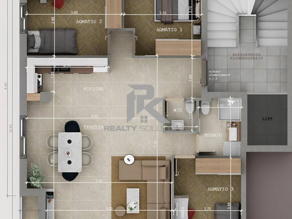 Apartment For sale, floor: 1st, in Kalamaria - Agios Ioannis. The Apartment is 110 sq.m.. It consists of: 3 bedrooms, 1 bathrooms, 1 wc, 1 kitchens, 1 living rooms and it also has 1 parkings (1 Open). The property was built in 2025. Its heating is Personal with Natural gas, Underfloor heating are also available, it has Thermal brake frames with Double glazed windows, the energy certificate is: A+ and its floors are Tiles. The property's status is: New development and it has South orientation. The Apartment is With Facade, Airy, Luxury and it also has the following unique features and advantages: Elevator, Storage, Security door, Security alarm. Price: €340.000. PK Realty Solutions, contact phone: 6984192750, email: info@pkrealtysolutions.com, website: