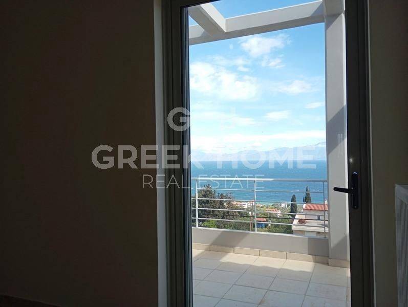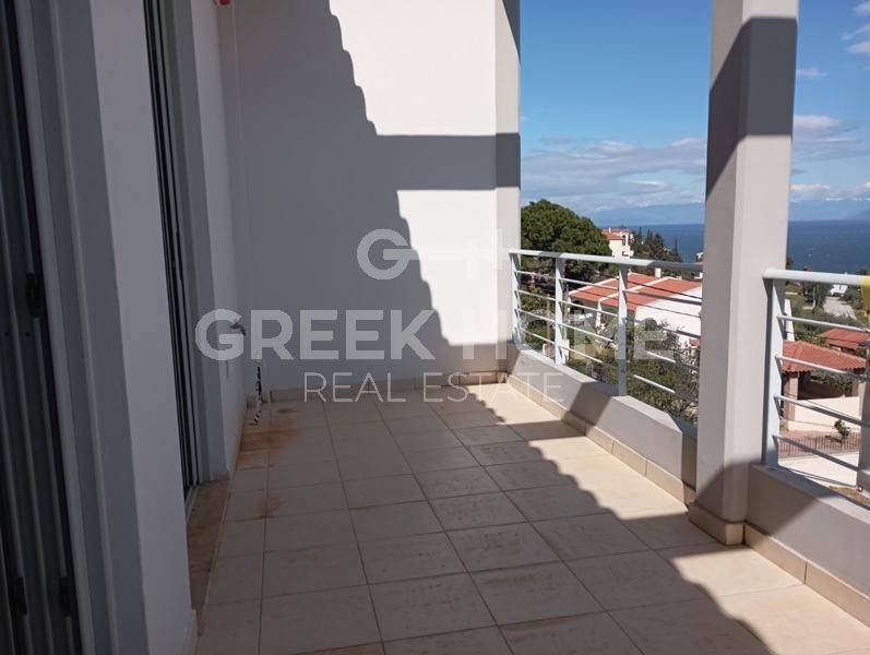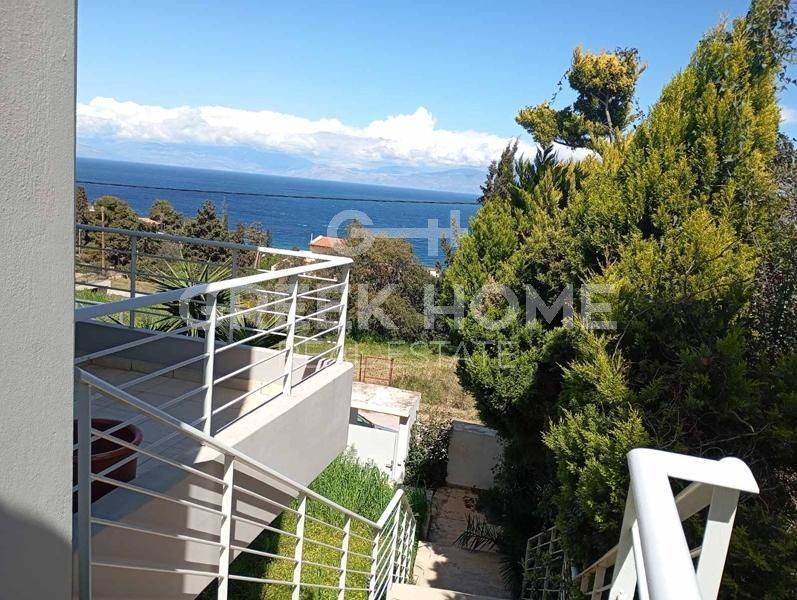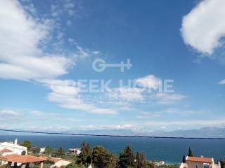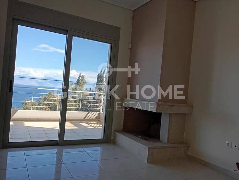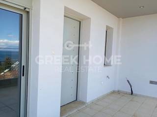 Xylokastro, Melissi - Tangent Maisonette 160sqm plot 250sqm, electrical appliances furnished, bedrooms 3, levels 2, ground floor - 1st, newly built, year built 2009, energy class A, 2 living rooms, hall, 2 kitchens, 2 bathrooms, 2 wc, heating type: autonomous (oil), parking covered, quiet, dual aspect apartment, luminous, sea view, frontage, painted, electric roller shutters, storage space 6sqm, boiler, fireplace, large balconies, garden, built in appliances, aluminum frames, double glazed windows, door screen, ceramic tiles floors, without common charges, secure door, alarm, luxurious, internal staircase, barbeque, pets allowed, sea front, north-eastern orientation, investment property, special offer, close to sea (up to 200m).
