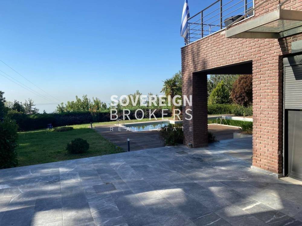 Panorama, Nomou Settlement 751: Villa for sale 600 sq.m. in 6000 sq.m. luxury plot, frontage on the 1st floor with 2-level elevator with oil heating in a 1-story building. It consists of 3 bedrooms of which 1 is a master, 1 kitchen, 2 living rooms, Garden, external storage, 2 bathrooms and 1 WC. It is equipped, with electrical appliances, built in 2005 and has a sea view, swimming pool, synthetic frames, security door, 6 parking spaces, energy class B+, wooden floors, screens, alarm, solar water heater. It is ideal for families or working people and pets are allowed. Additional features: BBQ, Independent entrance. Price €1,500,000 | Property Code: #111-44094