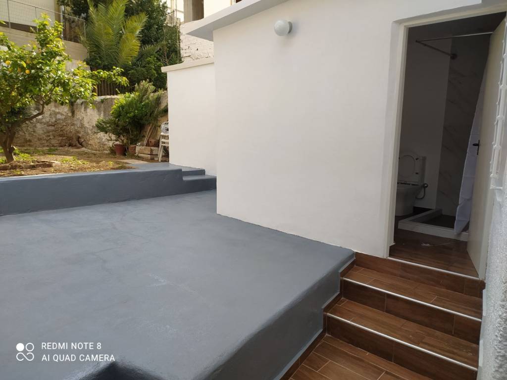 Detached house 105sq.m. fully renovated, with a large garden. It has 2 bedrooms, living room, brand new fitted kitchen, 2 bathrooms, large loft and storage room. It is bright and has a terrace on the front and a large garden at the back and access to the terrace with an external staircase. The electrical and plumbing have been changed, the interior doors, tiles, insulated terrace, armored door, night power, new air conditioners and solar water heater. It has no common areas, in a very quiet neighborhood. Pets allowed.