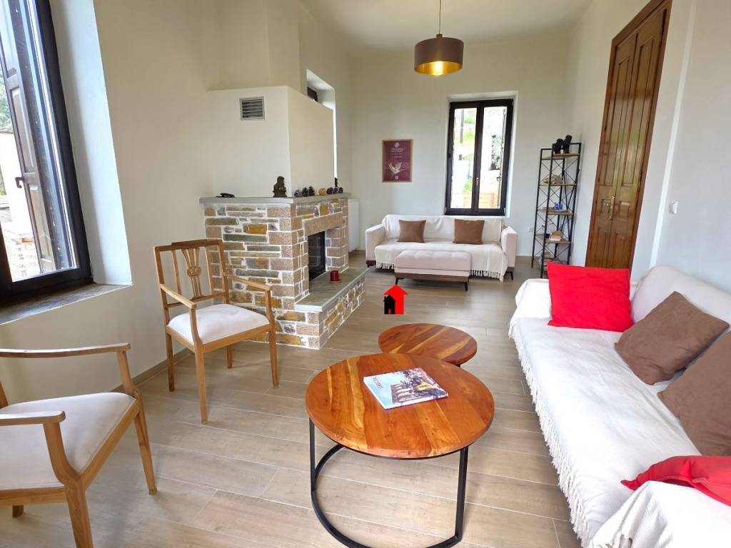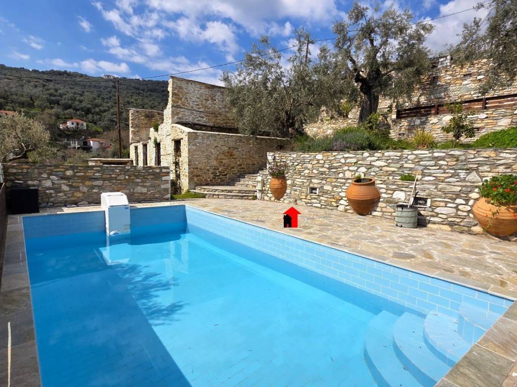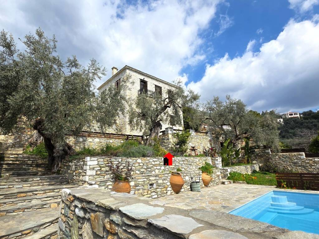 For sale in Ano Gatzea Pelion, an excellent traditional stone mansion of Egyptian architectural design, built at the beginning of the last century, with a total area of ​​238sqm on a plot within the plan, even and buildable, with an area of ​​1507.46sqm. Within the plot there is also a second stone 2-storey building that in the past operated as an olive mill with a base area of ​​approximately 97sqm, which is currently in ruins, but can be restored and made functional again if the new owner wishes so. The property, which literally has a view of the sea and the surrounding area that “takes your breath away” (!) even from its lowest level, was purchased a few years ago and was completely restored and renovated according to its original design and preserving all the traditional elements that make it so unique. A real gem! At the same time, the entire outdoor area was shaped accordingly, where taking advantage of the terrain, they created a multitude of functional and aesthetic terraces, the swimming pool and the perimeter stone wall with wooden railings. The property consists of the main house which extends over 2 upper floors with an area of ​​98.70sqm each (98.70 x 2 = 197.40sqm) and is analyzed as follows: – Upper level where the main entrance of the house is located, the reception hall, the bright living room with its fireplace dominating the center and with its characteristic balcony from where one can enjoy the view, 2 bedrooms and a bathroom. – Lower level where we go down via a built-in internal staircase covered with Pelion slabs and we find the hall, where around it there are 2 more bedrooms, the large bathroom of the house with bathtub and shower, a storage-laundry area etc., as well as the spacious dining room with the elegant ergonomic and stylish kitchen. Next to the kitchen there is a second main entrance that leads to the yard and one of the outdoor living areas with the built-in table. The building is completed by the ground floor of 40.61sqm where it has been formed as a single independent studio with kitchen and bathroom, ideal for hosting friends and access from the garden. The garden is an important part of the property, since during the summer months it offers a variety of options, such as: it is used either as a place to prepare food in the covered BBQ with the outdoor kitchen, or as a place to play and relax by the pool, but also part of it is used as a garden for fruit and vegetables and many flowers and plants. It also has 11 old and productive olive trees that provide the owner with the oil of the year.. and not only that! The renovation was done through an engineer – architect, since as we mentioned above the house was completely stripped and recreated from scratch. From the new roof with Pelion slabs, the wooden frames with double glazing, the new floors, the insulation, the structural reinforcement of the stone with mesh and concrete and generally everything.. Of the original materials, only the incredibly beautiful solid interior doors remained after they were naturally sanded and painted. It has heating with an oil boiler, a solar water heater and is available with the appliances and some of the furniture that can be seen in the photos (some pieces of sentimental value will be kept). The property is an ideal choice for both an exceptional permanent or holiday home, but also as an investment proposal. It has car access. Ano Gatzea is a picturesque village of Pelion and the property is just 1500m from the beach with its beautiful taverns and 20′ drive from the city of Volos. For more pictures visit: https://newagerealestate.gr/en/property/for-sale-stone-mansion-with-pool-in-ano-gatzea-pelion/ New Age Real Estate