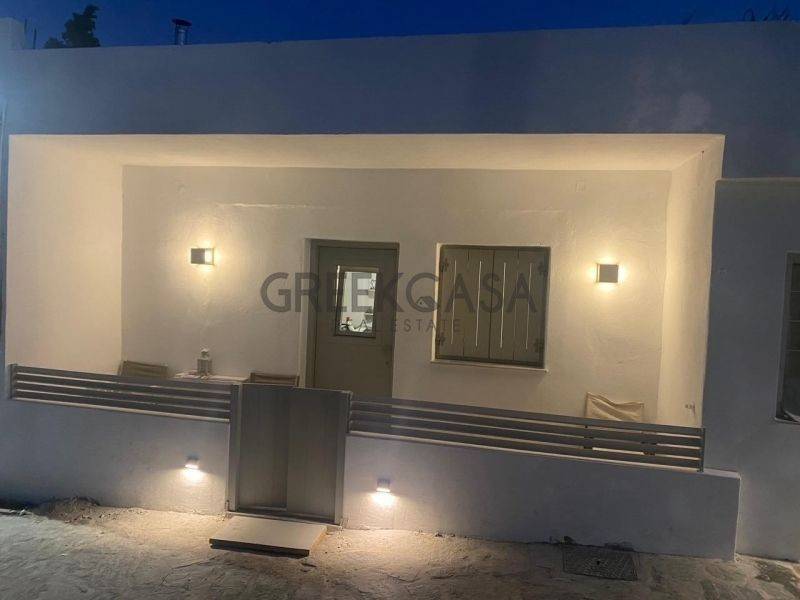 Paros renovated furnished detached house ground floor with a total surface area of ​​60 sq.m. . It consists of 1 bedroom, living room, bathroom . It has energy class C and was renovated in 1. It has heating, air conditioning, view of a square, wooden frames, cement floors, security door with trident, built-in wardrobes, disabled access, A/C, electrical appliances, screens, double glazing, solar water heater, in the southern part of the island, in a traditional village of Paros, very close to the beach of Molos and Kalogeros. The property was completely reconstructed in 2022. It is ground floor on one level and access is via a paved pedestrian street.; It was renovated in a minimal aesthetic and consists of 1 bedroom with wardrobe, 1 comfortable living-room open to the kitchen that has all electrical appliances which has an island and 1 bathroom with window. The floors are covered everywhere with cement mortar, the frames are brand new wooden to match the traditional architecture and with double energy glazing for absolute soundproofing and thermal insulation. It also has screens, solar, a/c unit, ceiling fan in the living-room and excellent Grohe sanitary ware