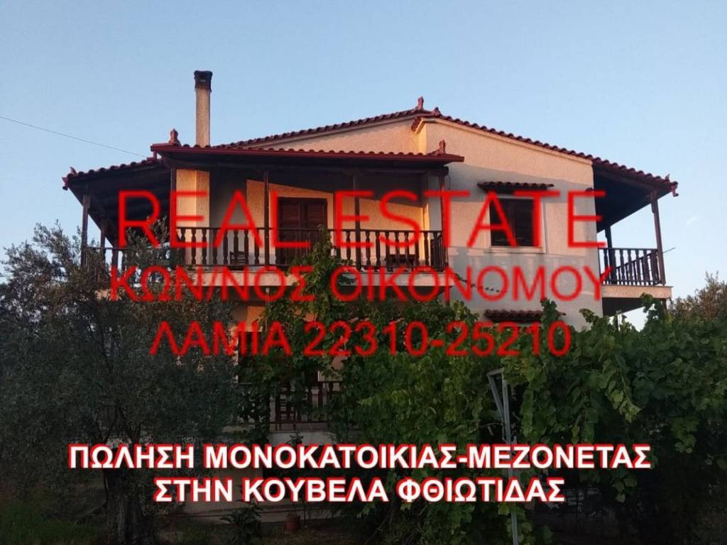 Detached house-maisonette for sale, in Kouvela, Fthiotida. It consists of a basement of 60 sq.m. and a maisonette of 120 sq.m., on two levels, 60 sq.m. each, connected by an internal staircase. The ground floor consists of an open-plan living room-kitchen, one bedroom, w/c and the first floor of three bedrooms and a bathroom. It has a fireplace, aluminum frames, double glazing, screens, a veranda and a wonderful view. It is located on a 6.5-acre fenced plot, on which there are 120 olive trees. It was built in 1994 and is just 500 meters from the sea. Selling price 180,000 euros.