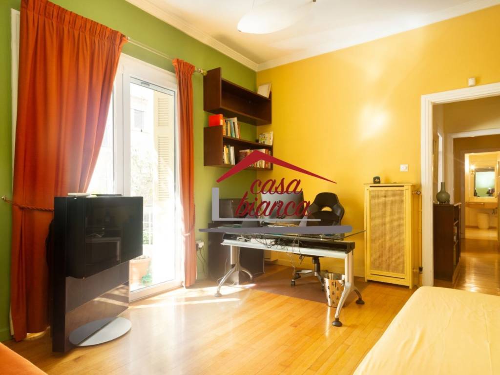 Amazing, luxury apartment of special architecture & aesthetics with an unobstructed view of Pedion Areos and the fountain. The apartment is fully furnished and equipped, has heavy solid doors and oak floors everywhere. Its furniture is of high aesthetics & consists of antiques and paintings of special value. It has 4 bedrooms (of which one is a maid's room), a luxurious fully equipped office, 2 bathrooms & 2 WC. The living room is huge and consists of 2 living rooms that communicate with each other and a huge imposing dining room. The living room has windows with access to the main front terrace and a circular patio with an amazing view. The master bedroom is huge with large closets and access to a beautiful balcony, full of plants. The office can operate independently of the rest of the residence as it is located near the main entrance and the large square hall. Utilities are excluded from the rental price. Also ideal for Embassies or commercial/professional use. Casa Bianca real -estate www.mycasabianca .com contact us: +306949082826 +30 2109574700-01 sales@mycasabianca.com price 1.550€, code 3747