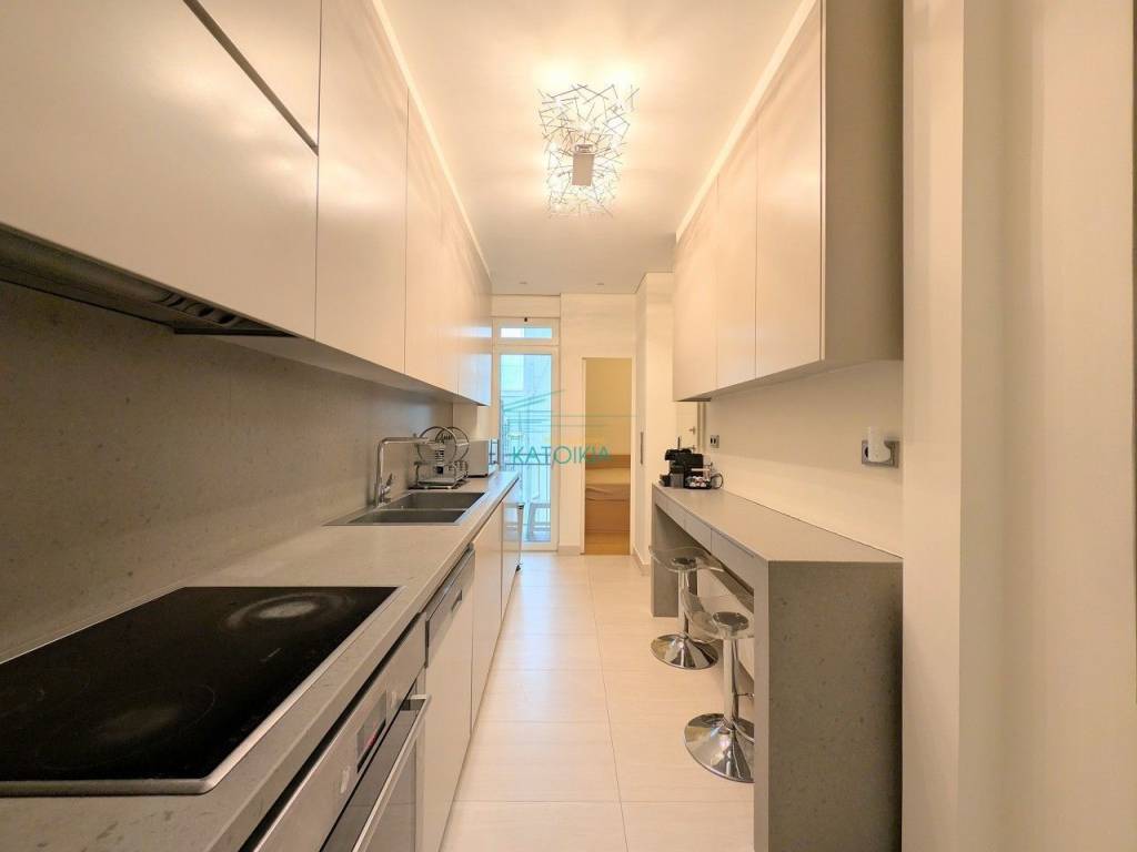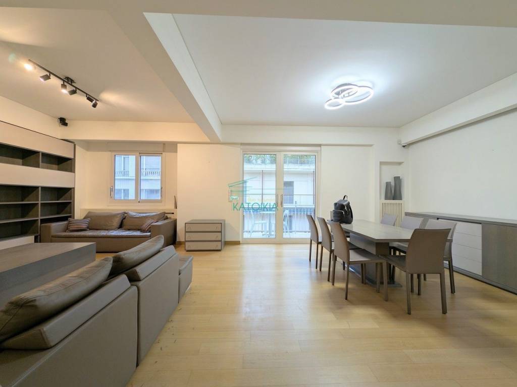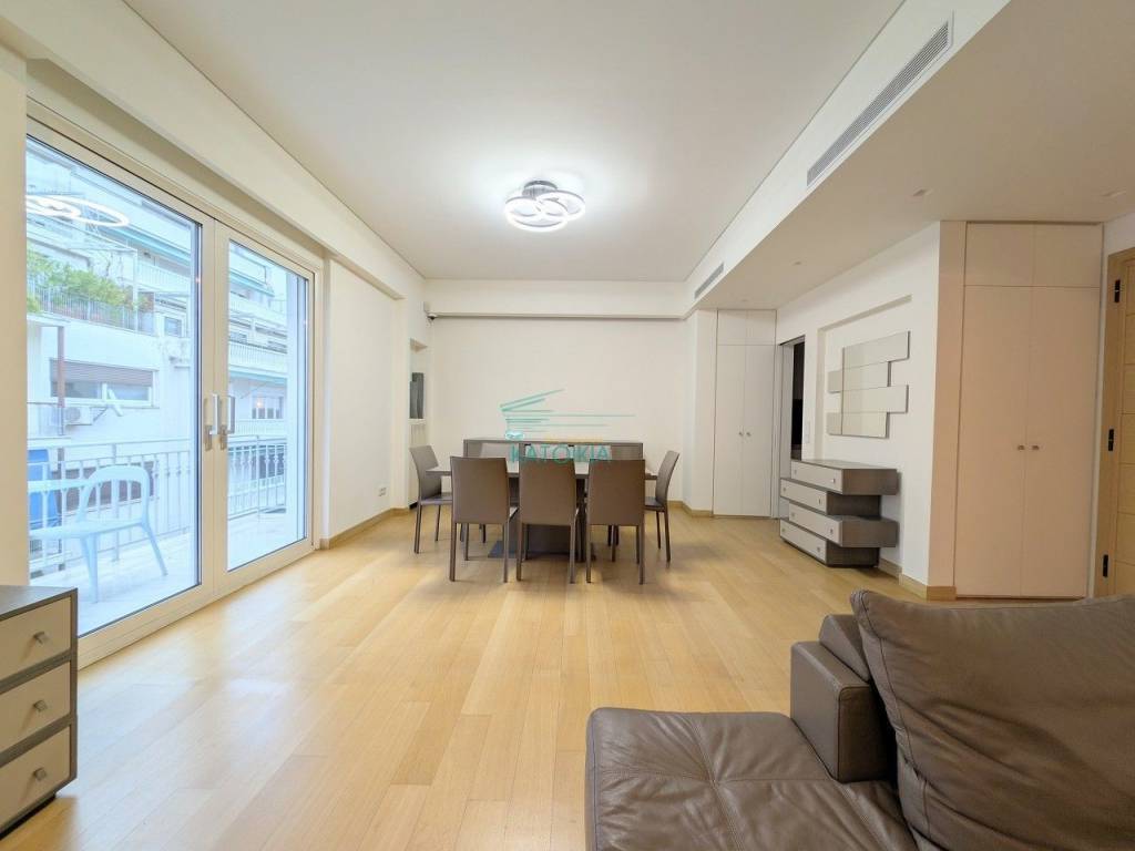 Situated in one of Kolonaki’s most prestigious locations, just a stone's throw from the central square, this exceptional 5th-floor apartment redefines the concept of sophisticated urban living. Spanning 96 sq.m., the residence has undergone a radical, high-specification renovation, seamlessly blending impeccable aesthetics with absolute functionality. Bathed in natural light and boasting an open horizon, the property offers a rare sense of openness and serenity in the heart of the city. The layout begins with an elegant reception hall leading into a notably spacious living area that integrates harmoniously with the dining room, creating an ideal setting for entertaining. The independent kitchen is a model of modern design, fully equipped with state-of-the-art integrated appliances. The apartment features two bedrooms, including a master suite with a private en-suite bathroom, alongside a second luxurious main bathroom. Meticulous attention to detail is evident throughout, from the authentic oak flooring and energy-efficient aluminum frames with electric shutters to the comprehensive air-conditioning and integrated alarm system. Offered fully furnished and equipped, this turnkey property is ready for immediate occupancy, representing a premier residential choice for those seeking the ultimate quality of life in Athens’ most distinguished neighborhood. Price 2.800€, code 58762