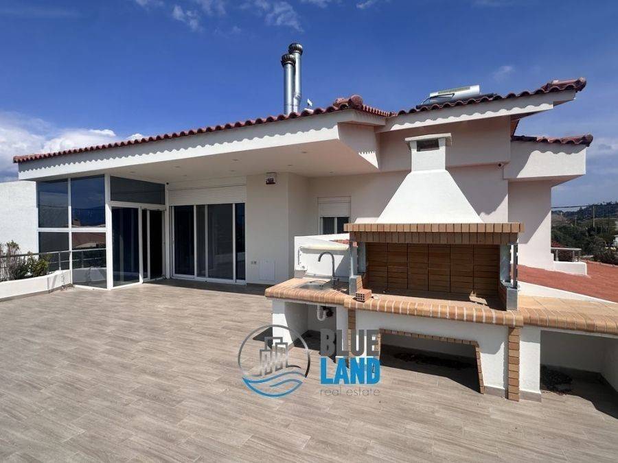 Rio, Agios Vasileios: A newly built, luxurious duplex with a total area of 210 sq. m. is available for rent on the 1st floor, spread over 3 levels. The property combines modern architecture, high-end aesthetics, and exceptional functionality, offering panoramic views of the sea and mountains. The residence features independent heating with a fan coil system, aluminum window frames with double glazing, a security door, an alarm system, a solar water heater, and tile flooring. Additionally, it includes an outdoor parking space, an internal elevator, a BBQ, and a wood-burning fireplace. The layout is as follows: the basement features a large open space suitable for a gym or playroom, as well as a storage area, with access to the first floor via the elevator. On the first floor, there are two comfortable bedrooms, a spacious and bright living room, a fully equipped kitchen, and terraces. Finally, the master bedroom is located in the attic, accessible via a wooden staircase. Its location is particularly convenient, as it is close to public transportation stops, schools, and a supermarket. Price: €1,300. Blueland Real Estate, Contact Phone: 2611811812, email: blueland.patra@gmail.com