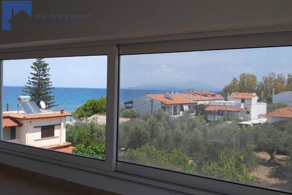 Peloponnese, Corinth, Xylokastro, at the area of Sykia, 30m from the beach and 300m from the center, a newly built, top floor, duplex apartmtent of 109 sqm is available for sale with sea and mountain view. It consists of a spacious living room with fireplace and open plan kitchen, 3 bedrooms and 2 bathrooms. It has double glazed windows with screens, safety door, autonomous heating and open air parking. Xylokastro has direct connection with Athens by the Proastiakos (Light) rail (1 hr) and the bus and it is ideal for summer and winter vacation as it is situated 30' and 10' drive from the ski resorts and the Yaght Marina. Find us on Facebook: Merryland Real Estate and on Instagram: merryland_realestate. Visit our site www.merryland.com.gr for more properties.