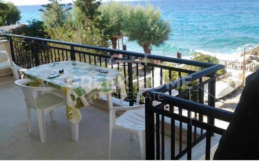 Evrostini, Lygia - Apartment 45sqm bedroom, 1st, very good condition, year built 1985, energy class Exempt, living room, kitchen, bathroom, heating type: no heating, quiet, luminous, corner, sea view, frontage, storage space 9sqm, large balconies, garden, aluminum frames, double glazed windows, door screen, marble floors, without common charges, three phase electricity, night electricity discount rate, pets allowed, sea front, northern orientation, close to sea (up to 5m).