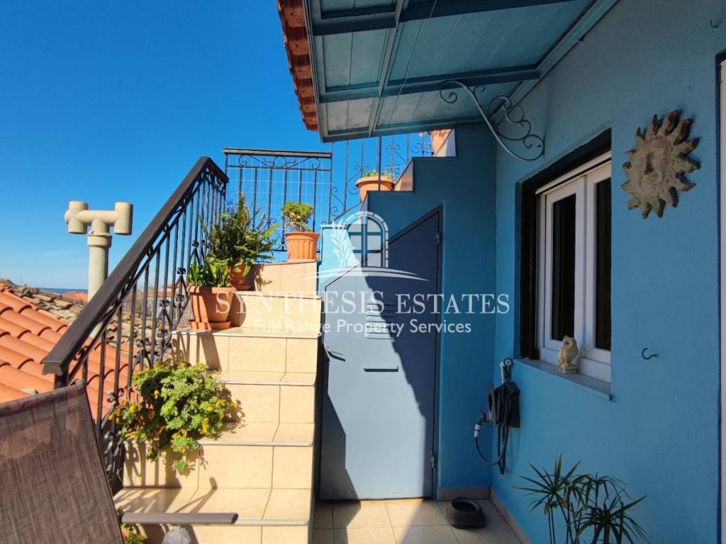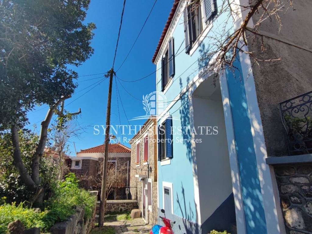 In a prime location, near the bakery and the village center, a two-story detached house with a total area of 157 sq. m. is available for sale. It is fully furnished and equipped, ready for immediate occupancy or rental. The property is situated in a quiet part of the village, offering an authentic island atmosphere and direct access to all essential amenities. The house consists of 3 bedrooms, a living room, a kitchen, and a bathroom. The interior layout is functional and comfortable, ideal for a family or for hosting guests. It is bright and airy. It features a spacious balcony with a wonderful view of the village and the sea, an ideal spot for relaxing and enjoying the scenery, as well as a basement. It is located near a bakery, restaurants, the traditional market, and a mini-market. Access is via a paved road (by scooter, car, or on foot). Parking is available nearby. Ideal as a permanent or vacation home. An authentic property with character, exceptional views, and direct access to everything, ideal for those who want to enjoy life in a traditional village.