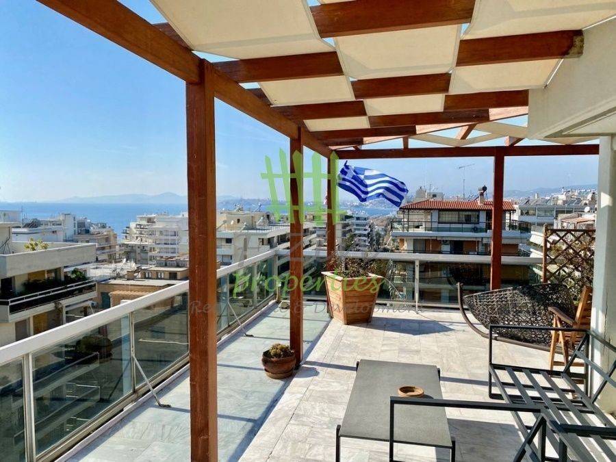 Luxury maisonette penthouse, consists of 3 levels, 6th floor 100sqm with large living-dining room with fireplace, kitchen, utility room-laundry, 2 WC, 7th floor 105sqm with living-office, 1 large master bedroom with bathroom, 2 bedrooms and a large bathroom, a 25 sqm roof with a small kitchen, a small bathroom with a shower, a bedroom and a large landscaped terrace-terrace for exclusive use with a pergola and bbq and an unlimited sea view. The elevator goes up to the 7th floor. In the basement there is a large warehouse with 2 rooms and a window and natural light, ideal for a guest house or gym and there are also 2 parking spaces outside with electrical charger. Rare and valuable property in an excellent location in Paleo Faliro close to trams, transport, market, Flisvo and Batis beach and Flisvo Marina and SNFCC, excellent investment