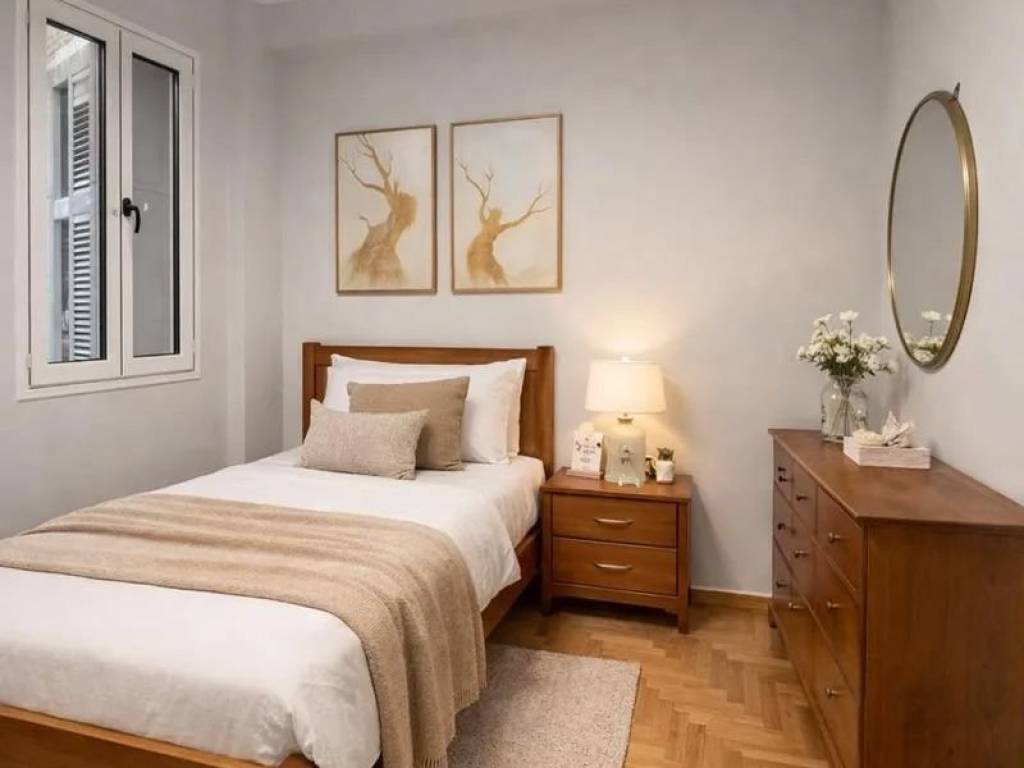 Renovated 1st-floor apartment for rent, with a total area of 80 sqm, located in Piraeus – Center (Port area). The property consists of two bedrooms, one bathroom, a kitchen, and a living area, offering a functional and comfortable layout. It was renovated in 2024, the apartment features autonomous heating with electricity, as well as air conditioning. Windows are aluminum with double glazing, the energy certificate is category E, and the flooring is tiles and wood. The apartment is furnished, front-facing, bright, and cross-ventilated, with an east orientation and views of open space. It is close to public transport, shopping, and dining areas, covering all daily needs. Ideal for students, a vacation home, or professional use. Additional features include elevator, electrical appliances, security door, internet, balcony, and office space, located in a quiet neighborhood. The mentioned location is indicative. KOSMOS REAL ESTATE Property Manager: Pantelis – +306986870912 padelis@kosmosrealestate.gr www.kosmosrealestate.gr