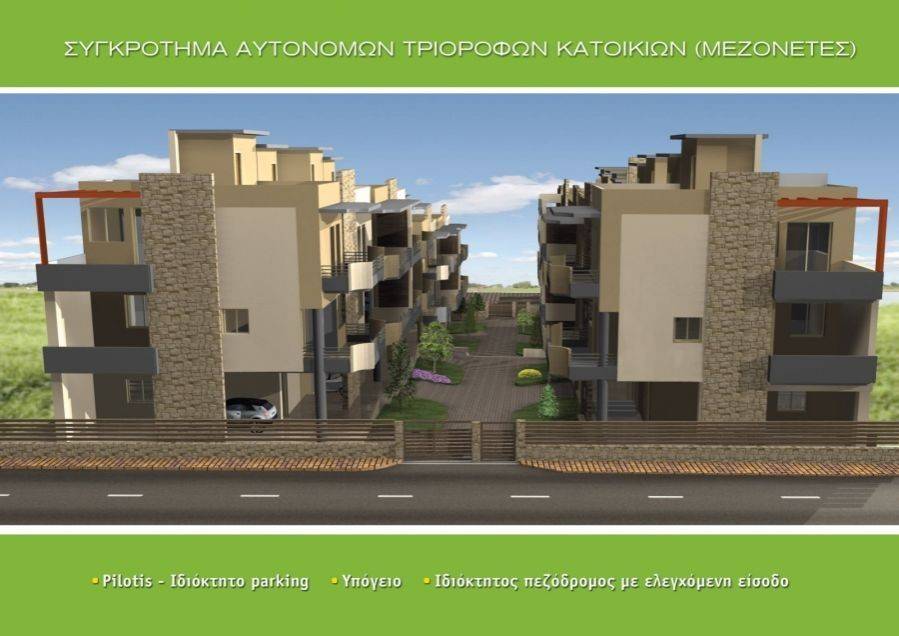 For sale: Two unfinished maisonettes of 130 sq.m. each, arranged over 3 levels, with construction started in 2010, located in the wider Mesabelies area, Heraklion, Crete. Each maisonette consists of: Basement (65 sq.m.) with storage areas Ground floor (12 sq.m.) with pilotis, including 2 parking spaces and an auxiliary area that can also be used as a guest room with WC First floor (52 sq.m.) with living room–dining area, kitchen, WC, and large verandas Second floor (52 sq.m.) with 3 spacious bedrooms with access to balconies and a bathroom The rooftop includes provisions for the installation of a pergola. Each building is fully thermally insulated and can accommodate autonomous underfloor heating. Delivered unfinished (at the concrete stage) for €295,000, or fully completed class A, “turn key job” for €395,000. Located in an excellent and quiet area of Heraklion. Immediately available.
