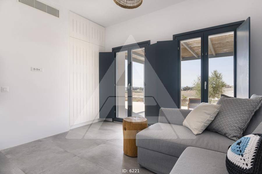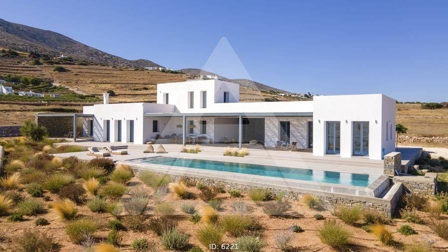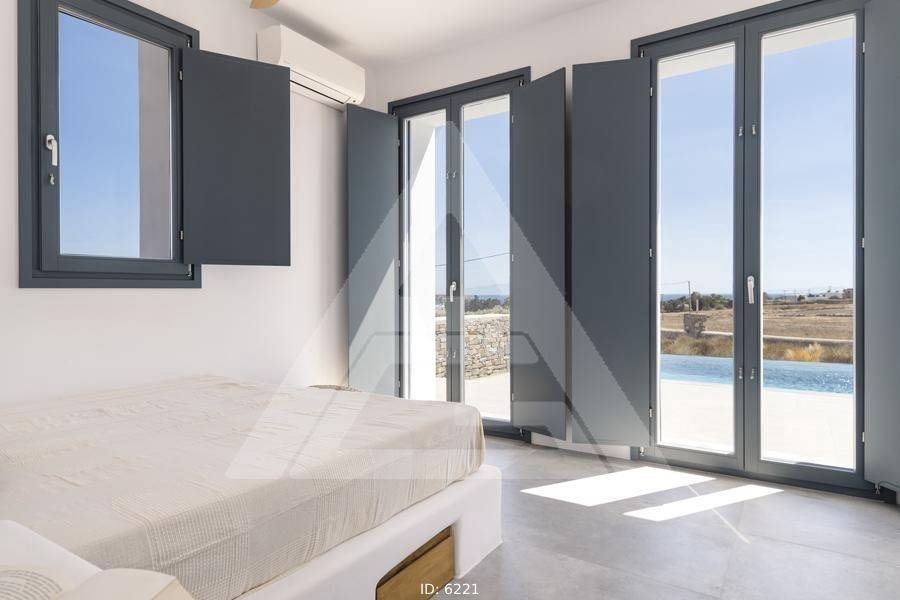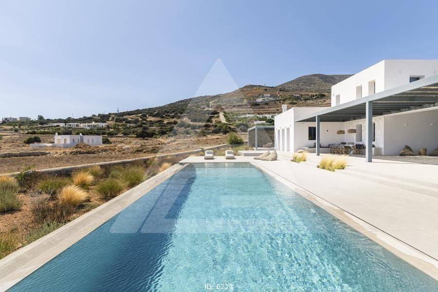 Paros, Hrysi Akti - Villa 240sqm plot 13000sqm, fully furnished, bedrooms 4, master bedrooms 2, excellent condition, year built 2022, energy class A++, living room, hall, 2 kitchens, semi-outdoor space, 3 bathrooms, heat pump, air condition, parking, quiet, dual aspect apartment, luminous, sea view, frontage, painted, storage space, solar heater, fireplace, large balconies, garden, built in appliances, aluminum frames, double glazed windows, door screen, ceramic tiles floors, three phase electricity, secure door, luxurious, swimming pool, private pool, internal staircase, barbeque, guest house, residential zone, investment property, special offer.