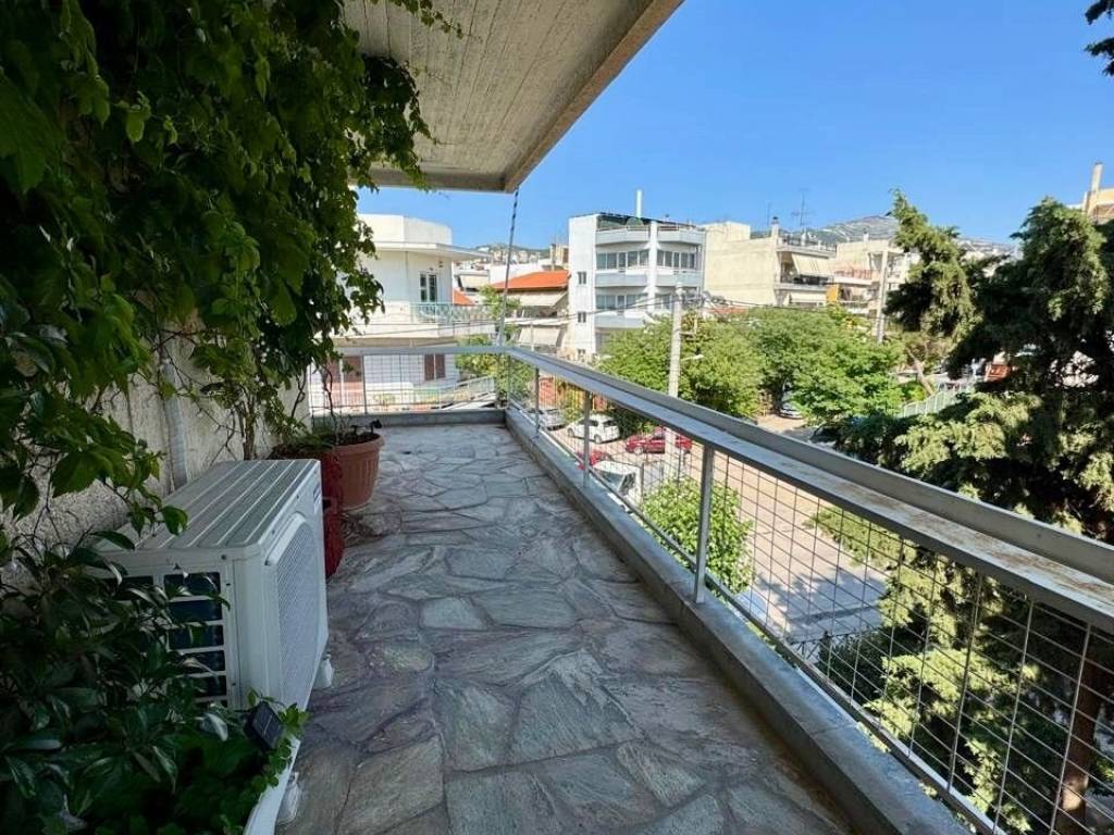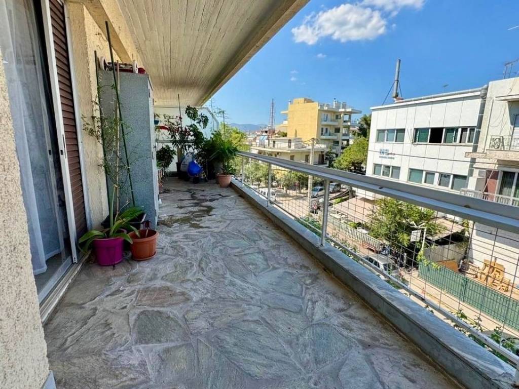 A 115 sq.m. corner apartment on the 3rd floor, located in the center of Nea Erythraia, very close to shops and public transportation. The apartment features two spacious bedrooms, a large bathroom, a separate large kitchen, a bright living room with a fireplace, and a separate dining area that can be converted into a third bedroom or office. It also has two large corner balconies providing plenty of natural light, as well as a 5 sq.m. basement storage room. Heating is central natural gas, and the building was constructed in 1975.