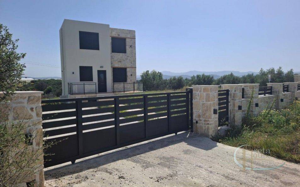 Introducing a stunning, recently constructed home located just a short five-minute drive from the beautiful Kokkinos Pirgos beach in the outskirts of Timbaki! This impressive property is 108m2 of living space on a generous 2000m2 plot, with an additional 90m2 building allowance for future expansion. The house comes fully equipped with a fan coil heating and cooling system, as well as a modern kitchen complete with integrated electrical appliances. The ground floor features a bathroom and an open-plan kitchen and living room, while the 1st floor offers three spacious bedrooms and two additional bathrooms. This exquisite home offers the perfect combination of luxury, comfort, and convenience in a prime location near the beach.