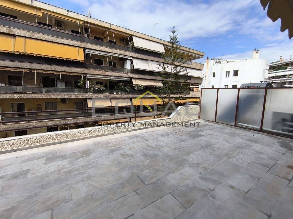 An exceptional, fully renovated 77 sq.m. apartment is available for sale in Palaio Faliro, featuring an impressive 60 sq.m. bright veranda, which is the property’s main highlight and is ideal for creating outdoor lounge and dining areas. The apartment is located on the 1st floor and was renovated in 2026, preserving its distinctive retro character, which blends harmoniously with modern, high-quality materials. The original marble floors in the living room and kitchen have been maintained, while the bedrooms feature wooden parquet flooring, adding warmth and balance to the space. The layout is functional and well-balanced, including a spacious living room, a separate kitchen with ample storage, two bedrooms, and a modern bathroom. The apartment also offers large built-in wardrobes, as well as a specially designated space for a washing machine and dryer. It is a bright and quiet apartment with a southwest orientation. The side openness allows abundant natural light, creating a pleasant sense of space, especially on the veranda. Additional features include aluminum window frames with double glazing, central oil heating, a security door, and fully automated awnings. The building is equipped with an elevator. It is located in an excellent area, close to the market, public transport, and green spaces. Energy class: B A unique choice that combines aesthetics, comfort, and a rare outdoor space, in one of the most sought-after areas of the Athenian Riviera. Price: €270.000. Equal Real Estate, contact phone: 2106203777, email: equal.pr.mn@gmail.com, website: www.equal.pr.mn@gmail.com