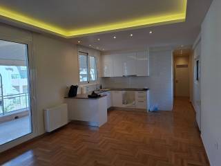 A sunny and fully renovated 5th floor penthouse is available for a long-term lease through PRO REALTOR. Interior area of 70 sq m. The property consists of a living room and a kitchen in an open space, 1 main bedroom and 1 smaller one, both with new and spacious built-in wardrobes, 1 bathroom and 1 large terrace of 35 sq m. Wooden and tiled floorings. Double glazed windows with aluminum frames, screens and awnings. Oil central heating, air conditioning in the living room, the main bedroom and a ceiling fan in the smaller bedroom. In addition, there is a security door, an elevator and a small external storage space. This bright apartment is located in Goudi area, just a 2-minute walk from the Children's Hospital, 7 minutes from Agios Thomas Square and 15 minutes from Ampelokipi metro station. The area provides various amenities to the potential tenant such as cafes, restaurants, supermarkets, banks as well as direct access to other means of public transportation.