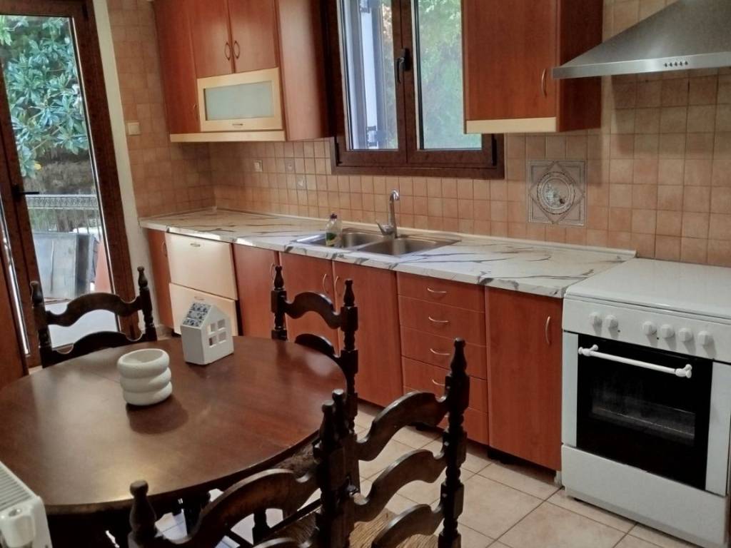 For rent is the Ground Floor of a duplex house 105 sq m FURNISHED located at 14 Theofilou Street in Alli Meria. It is very close to a public kindergarten, kindergarten, primary school and private (Axion Esti). Supermarket, mini market and two very good taverns (ILIAS and Skalakia tis Charas) It is in nature very quiet, cool in summer and warm in winter due to external thermal insulation (shell)