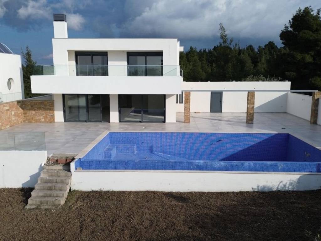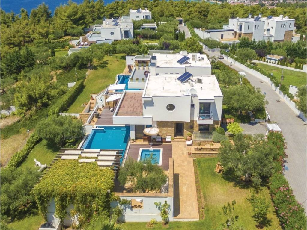 Property Code: HPS5938 - Villa FOR SALE in Kassandra Siviri for € 1.550.000 . This 340.00 sq. m. Villa consists of 3 levels and features 6 Bedrooms, Livingroom, 2 Kitchens, 6 bathrooms and a WC. The property also boasts Heating system: Underfloor Heating - Heat pump, tiled and wood floors, view of the Sea, Window frames: Aluminium, Security door, parking, a storage unit sqm, garden, fireplace, swimming pool, A/C, alarm system, double-glazed windows, laundry room, open space, internal staircase. The building was constructed in 2025 Plot area: 1200 s.q. . Building Energy Rating: A+ Distance from sea 350 meters, Distance from the city center: 93000 meters, Distance from nearest village: 850 meters, Distance from nearest airport: 83000 meters,