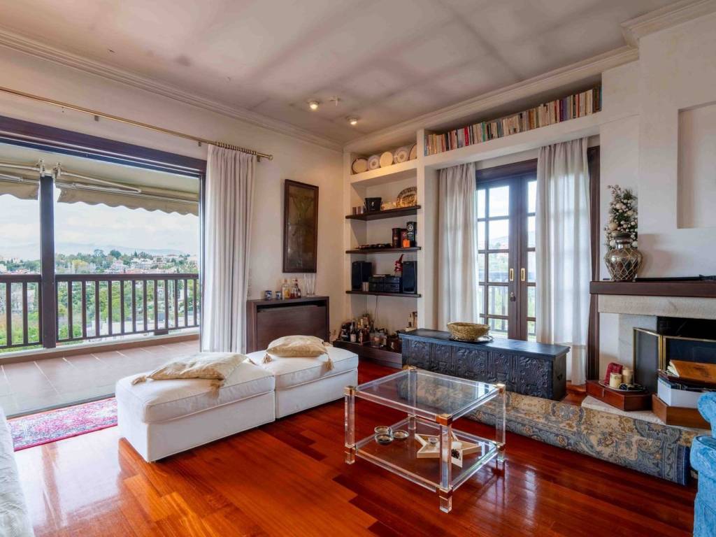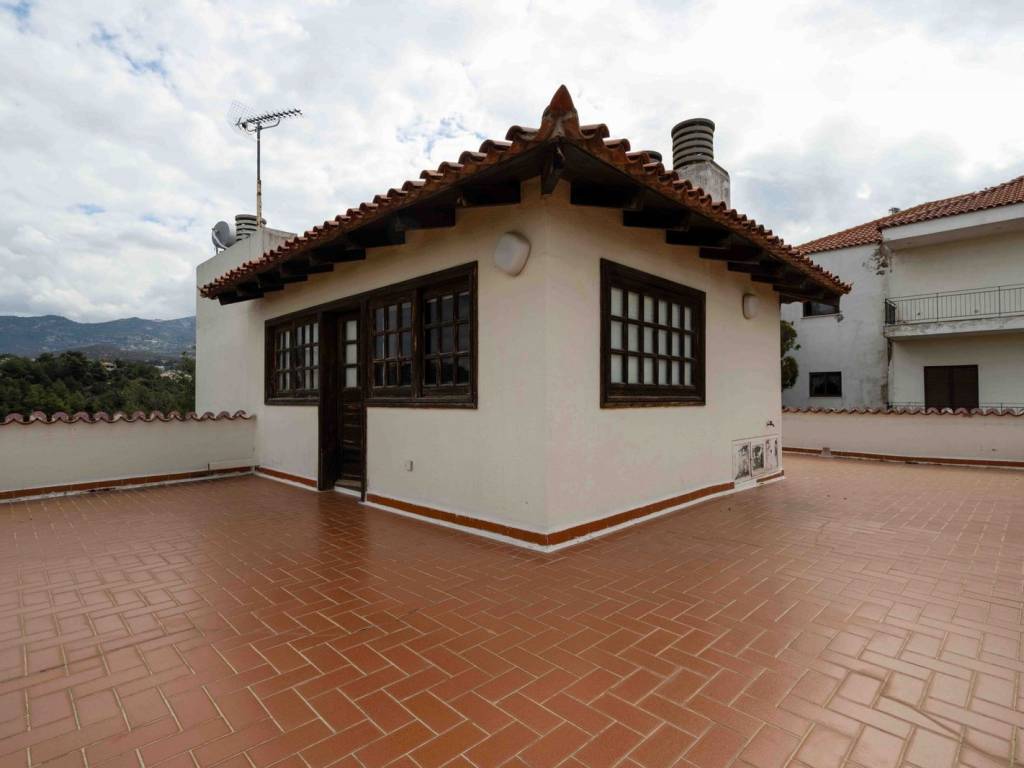 A 260 sq.m. second-floor whole-floor apartment is available for sale in Marousi, offered together with an independent 50 sq.m. ground-floor apartment and a 30 sq.m. top-floor studio (δώμα). The total surface of the property is 340 sq.m., built in 1990, and it is located in a unique forest setting where tranquility and quality of life are perfectly combined with direct access to the center of the area. The property includes: -Elevated ground floor (50 sq.m.): Open-plan layout featuring living room, bedroom, kitchen, and bathroom. -Second floor (260 sq.m.): A spacious reception area with large verandas, fireplace, wooden flooring, kitchen, 4 bedrooms (including 1 master bedroom with a large en-suite bathroom), 3 additional bathrooms, and 1 guest WC. -Third floor (30 sq.m.): A rooftop studio with a living area, fireplace, and 1 bathroom. These three independent units can function either as one large, comfortable, and luxurious residence for an extended family, or as separate homes, offering flexibility in layout and multiple usage options. The interiors are bright and generously sized, while the construction quality is particularly well-crafted, featuring a solid structure and timeless materials. The large verandas are a key highlight, offering unobstructed views of the forest and the surrounding area. Additionally, the property includes 2 storage rooms (totaling 50 sq.m.) and 2 parking spaces in a closed garage. This is a unique property set in a natural environment, offering views, privacy, and serenity, without sacrificing proximity to the urban fabric and essential amenities—an ideal choice for both owner-occupation and investment. Unique features: Marousi is Athens’ commercial hub and the base of many multinational companies, businesses, and advertising agencies. This in turn means that the surrounding area offers a wide range of bars, cafés, restaurants, banks, shops, as well as large shopping malls. Marousi also hosts some of Athens’ best-known hospitals, while many foreign-language schools are located at short distances. For wellness and exercise enthusiasts, the Olympic Athletic Center of Athens (OAKA) is available, as well as Athens’ largest green park, Syngrou Grove, offering a major escape within the city. Accessibility: Marousi is easily accessible by metro, the two suburban rail stations, and by bus. It is very close to the Attiki Odos ring road and the National Road, and is only 35 minutes by car from the airport. Investment potential: Marousi has always been attractive to real estate investors due to its advantageous location and the development it has seen in recent years, resulting in property prices consistently offering a good return on investment.
