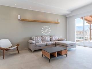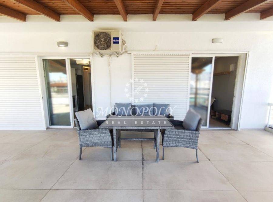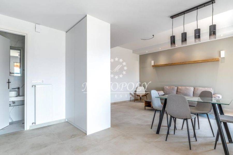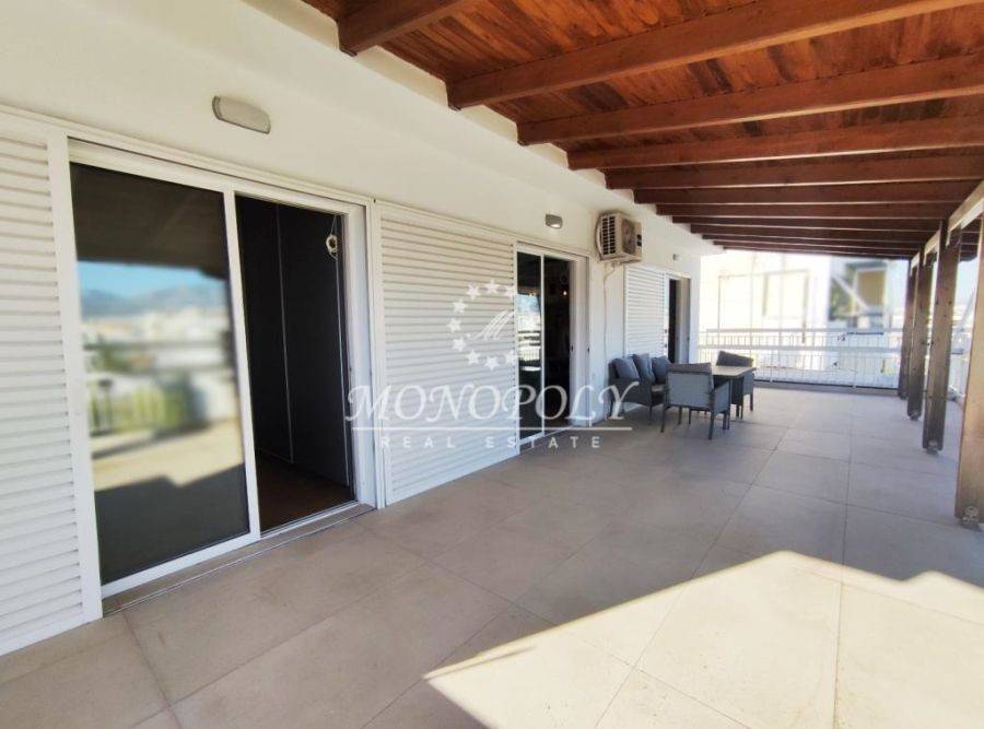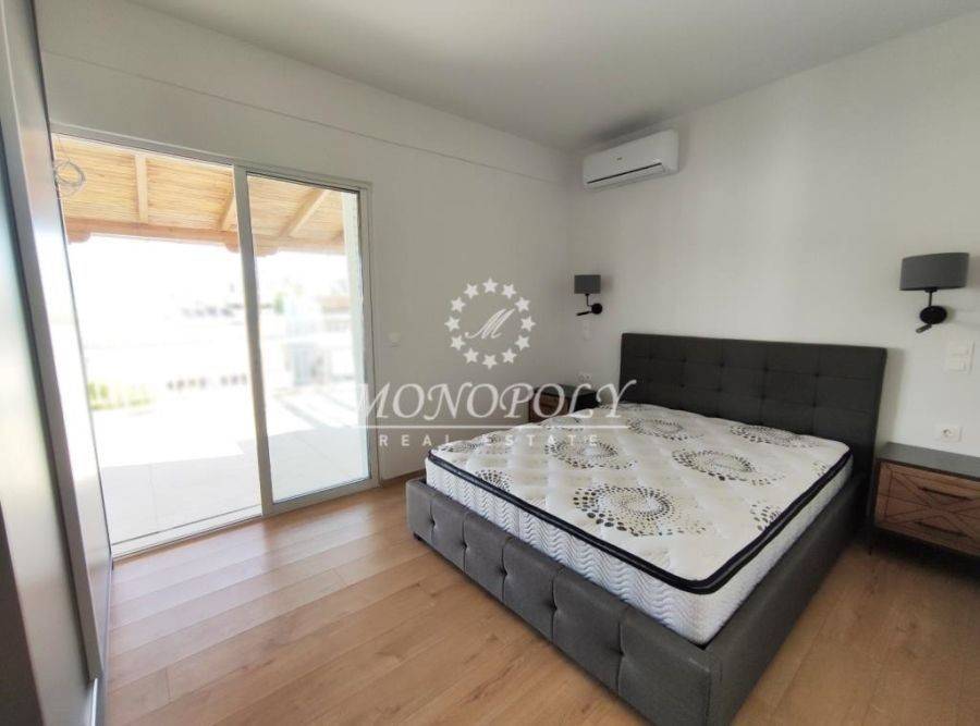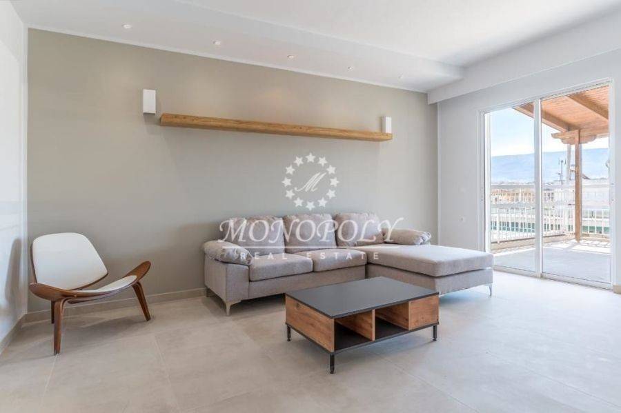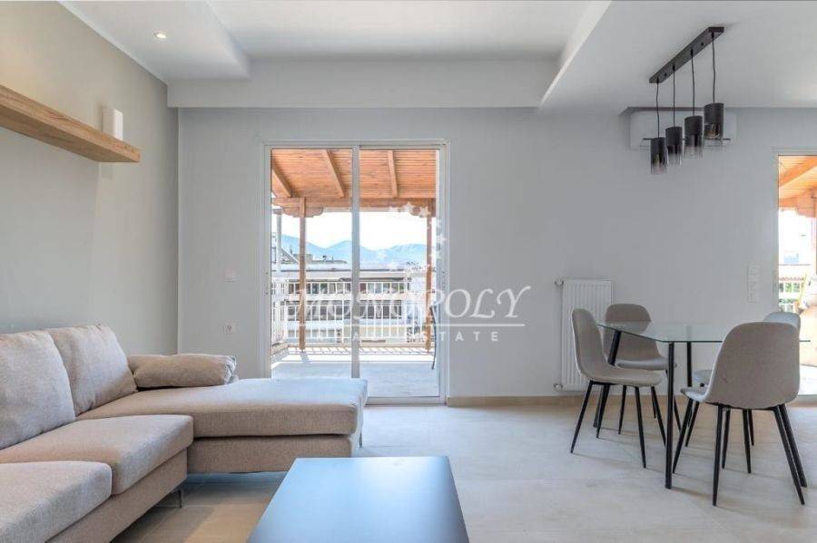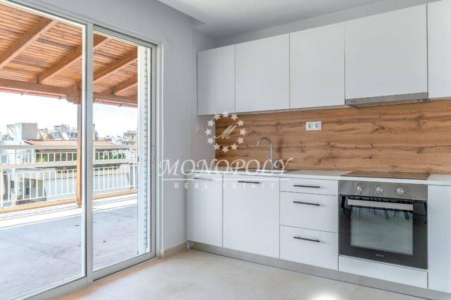 Palaio Faliro, near City Hall, furnished 72 sq.m. floor apartment, 5th floor Penthouse, built in 1972, renovation in 2023, on frontage, bright and in good condition. It consists of a living room with a kitchen with built-in electrical appliances, 2 bedrooms, 2 bathrooms with shower and a balcony. It has air conditioning, solar water system, aluminum frames, double glazing, security door, alarm installation, elevator and a wonderful large 40 sqm balcony with Pergola. It is fully furnished. It is located in a quiet area, close to the market and transport. Available from 1 of July 2026. *Property location on the map can be relevant and not accurate. *ID or Passport and TAX number are required for visiting the property, from each person that will be present.
