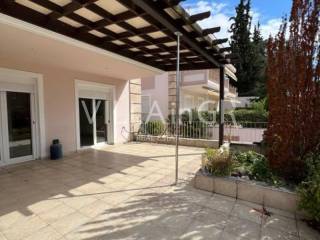 Property Code: 87-6853 - Maisonette FOR RENT in Panorama Center for € 1.200 . This 150.00 sq. m. Maisonette is on the Ground floor and features 4 Bedrooms, an open-plan kitchen/living room, 2 bathrooms . The property also boasts Heating system: Individual - Petrol, tiled floor, Window frames: Aluminium, Security door, parking, a storage unit sqm, garden, fireplace, A/C, alarm system, double-glazed windows, open space. The building was constructed in 2003 . Building Energy Rating: A