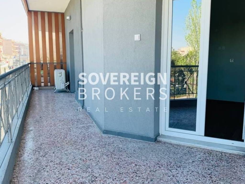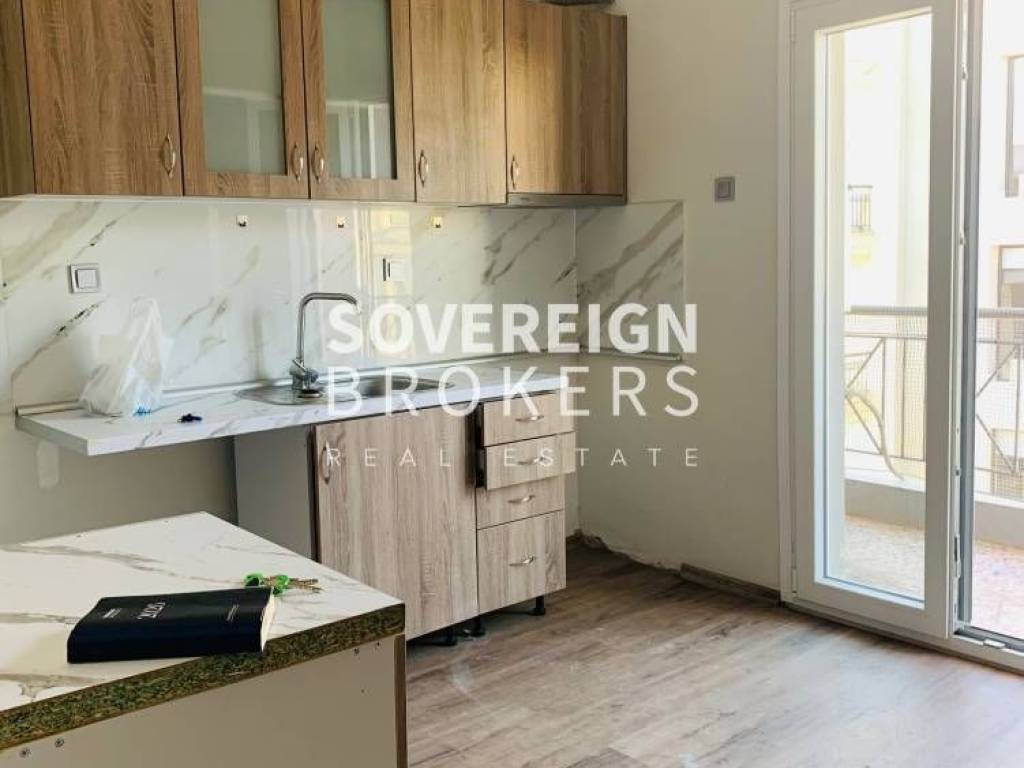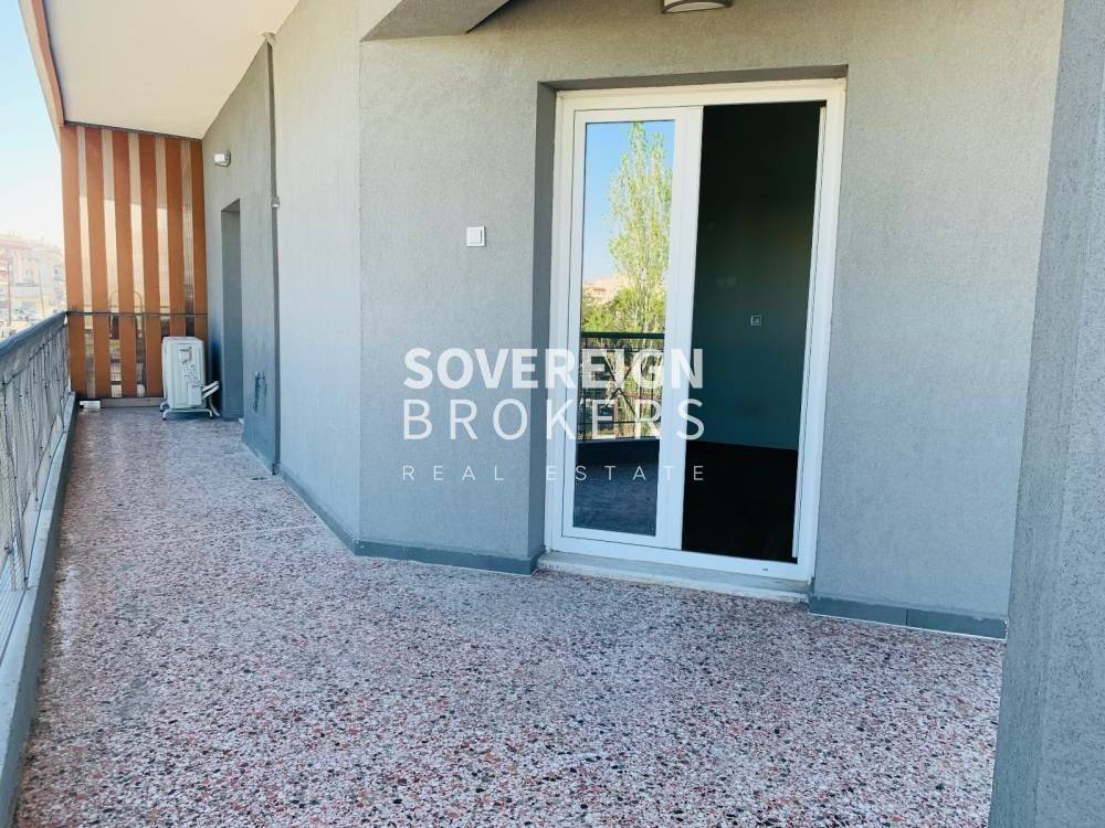 Thessaloniki-Evosmos: Fully renovated Apartment for rent 105 sq.m. luxury, frontage on the 1st floor with elevator, with natural gas heating in a renovated 2-story building. It consists of 3 bedrooms, separate kitchen, living room and bathroom. It was built in 1965, freshly painted with an open view, big balcony, synthetic frames, armored door, air conditioning, energy class B, laminate floors. It is ideal for residential or commercial use with no monthly utilities. Price €650 Property Code: #77-44139