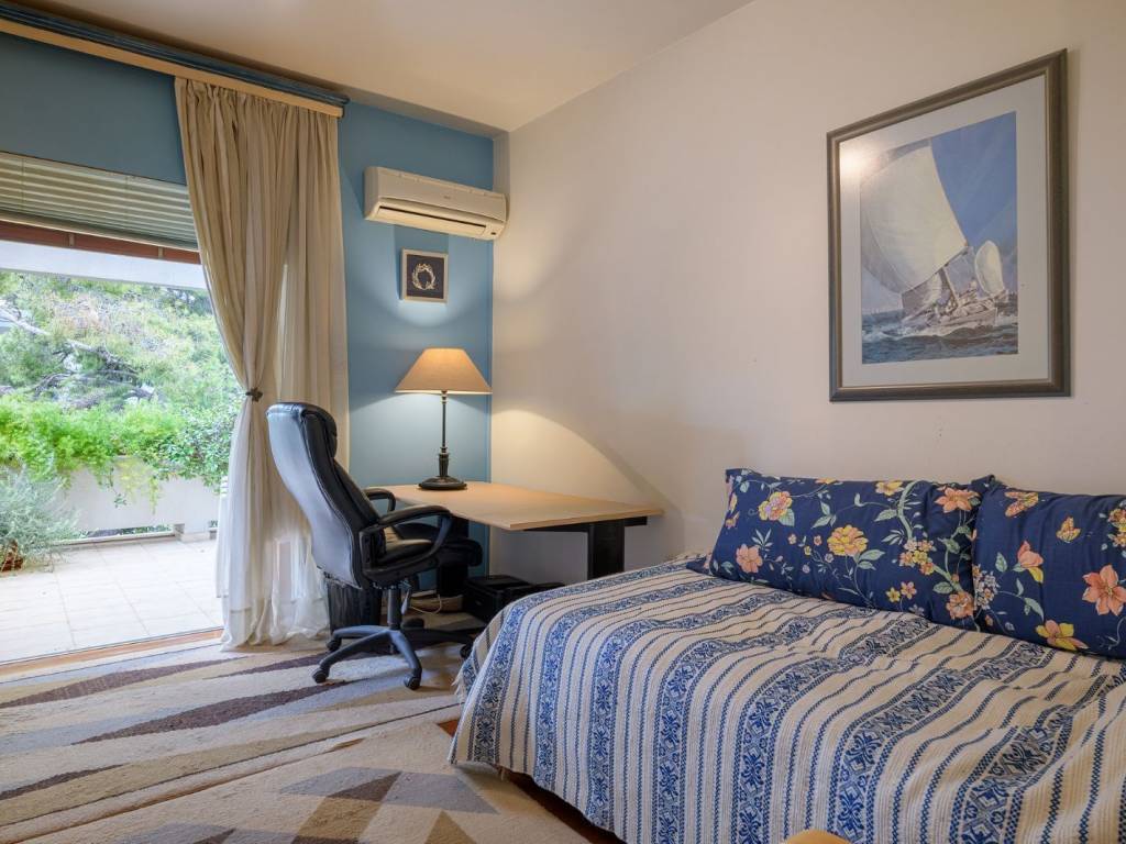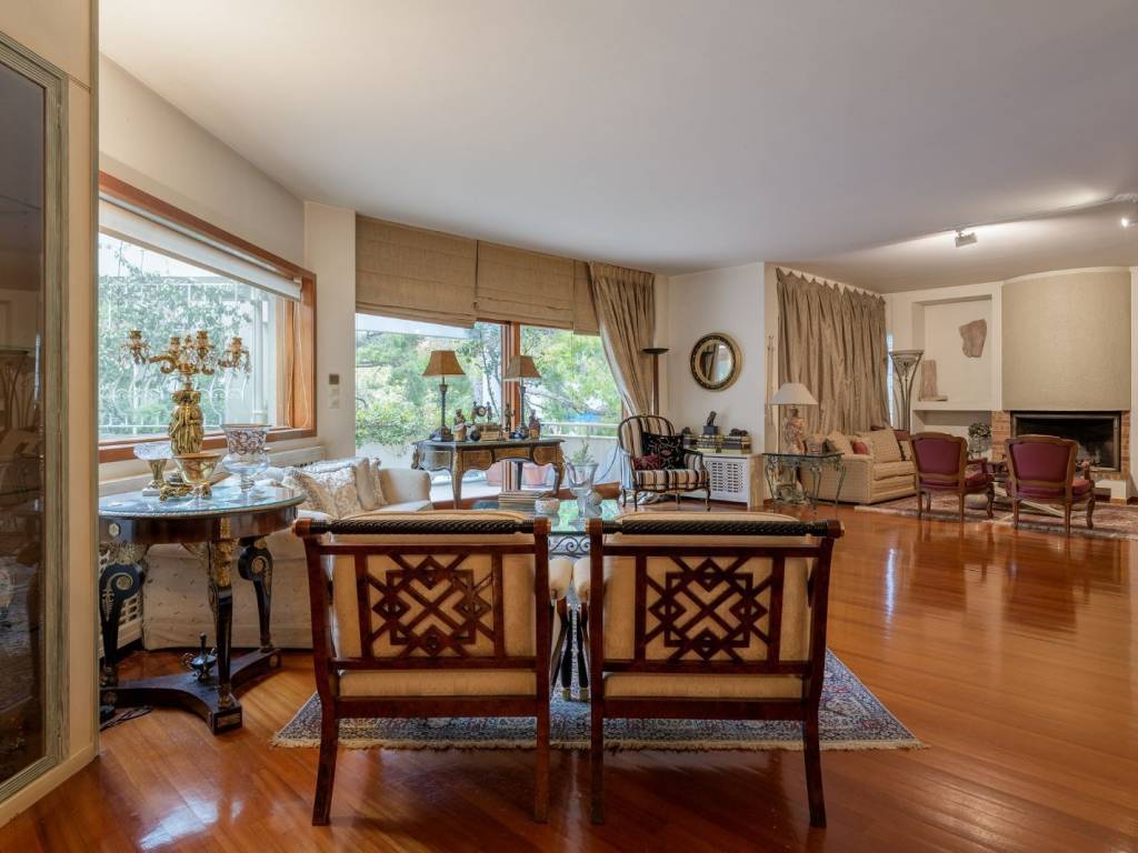 A wonderful property, walking distance from the center of Kifisia. The 1st floor apartment offers 267sq.m. and is part of a 2-storey building featuring exclusive use of 750sq.m. plot. The property offers large receptions areas with a fireplace and access to a balcony, a dining area, a spacious kitchen, 1 master bedroom with its en-suite bathroom, 1 en-suite bedroom, 2 bedrooms sharing 1 bathroom and a W.C. Additionally, the property offers a wonderful garden, 2 parking spaces in the garage and a storage room. A beautiful apartment in a very central location in Kifisia.