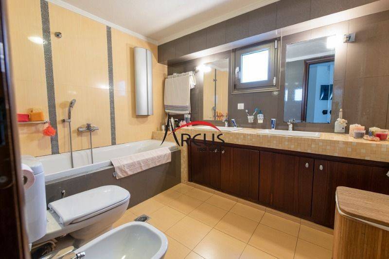 Θέρμη / Επέκταση Πωλείται βίλα πολυτελείας 450τ.μ,. κατασκευής 2010 με πισίνα 60τ.μ. στο οικόπεδο συνολικής έκτασης 4840 τ.μ. Η βίλα αποτελείται από 3 επίπεδα: Ισόγειο 200τ.μ.: πολύ μεγάλο, ψηλοτάβανο και ηλιόλουστο σαλόνι με 2 τζάκια, με άμεση πρόσβαση στην βεράντα και στην πισίνα, 1 μεγάλη κουζίνα, χολ, 4 υπνοδωμάτια (το 1 master με δικό του μπάνιο και βεστιάριο), 1 μεγάλο μπάνιο και 1 WC . Σοφίτα 50 τ.μ.: χώρος γραφείου, καθιστικό (μπορεί να μετατραπεί σε υπνοδωμάτιο) και 1 WC. Ημιυπόγειο 200τ.μ.: γυμναστήριο, εγκατάσταση για τζακούζι, 1 μπάνιο, Cava, laundry, αποθηκευτικός χώρος, λεβητοστάσιο, γκαράζ. Η θέρμανσή της είναι ενδοδαπέδια με πετρέλαιο, κλιματισμό, 3 ηλιακά άμεσα συνδεδεμένα με σύστημα ενδοδαπέδιας και 2 τζάκια. Επίσης, διαθέτει σύστημα κεντρικής σκούπας, συναγερμό, πόρτα ασφαλείας, ρολά ασφαλείας, βεράντες, ασανσέρ, εσωτερική σκάλα, κιόσκι για BBQ στην αυλή 30τ.μ., γεώτρηση και αυτόματο πότισμα, δεξαμενή ποτίσματος. Βρίσκεται σε μια ήσυχη περιοχή της Θέρμης, σε ελαφρώς υπερυψωμένο οικόπεδο με θέα τον Όλυμπο, με εύκολη πρόσβαση τόσο στο κέντρο της πόλης, όσο και στον δρόμο της Χαλκιδικής. Κωδικός ακινήτου 102970 Τιμή (1150000€)
