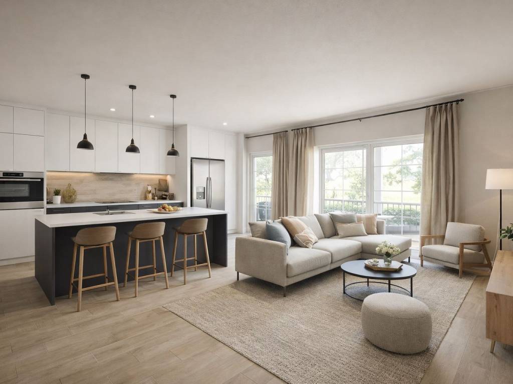 Self-contained first floor apartment with modern design. Delivered renovated based on your choices. Final configuration is determined by you.