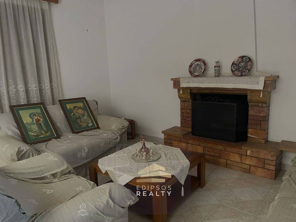 For sale, detached house, with a total area of 130.75 sq.m., in Agios, Evia, on a plot of 296.55 sq.m. It consists of 3 bedrooms, 1 bathroom, kitchen - a small living room, open-plan, and a larger space which can be used as a living or dining area. It has a fireplace, tiles, wooden frames, central oil heating, radiators, 3 balconies, a ground floor garage (pilotis), a 50 sq.m. basement used also as storage where the boiler is located, a garden with trees, and a covered space which can be used as storage and has a small bathroom. It has sea and greenery views, is located in a quiet neighborhood, and is in very good condition. It is 7.2 km from Loutra Aidipsou and 14 km from Istiaia. The village of Agios stands out for its natural beauty, amidst olive groves, and combines mountain and sea. Its location makes it ideal for both permanent residence and vacation use. It is distinguished by its traditional taverns and its picturesque character. Price: €150.000. EDIPSOS REALTY, Contact Phone: 6983505978, email: edipsosrealty@gmail.com