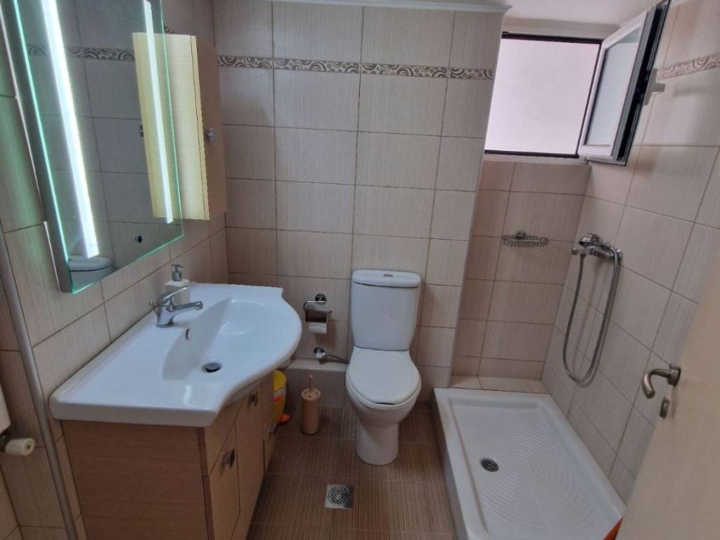 Διαμερισμα με 2 υπνοδωματια,σαλονι και μεγαλη ξεχωριστη κουζινα στην οποια υπαρχει τραπεζι κουζινας.Το μπανιο ειναι ανακαινισμενο με καινουργια ντουζιερα και καινουργια πλακακια..ΟΙΚΟΣΤΕΓΗ ΜΕΣΙΤΙΚΟ