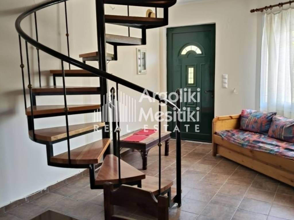The house is available for long-term lease of at least 2 years. In an ideal location, just a few steps from the beach of Kandia in the Municipality of Nafplio, a fully furnished and equipped Maisonette is available for rent, with a total area of 85 sq.m. The house consists of two levels and the attic. On the 1st level on the ground floor there is the living room with fireplace, the kitchen, a bathroom and a veranda with an opening and access to the small garden of the house. On the 2nd level, which can be reached by an internal metal staircase, there are two (2) comfortable bedrooms with built-in wardrobes, a bathroom and a balcony with a view of the sea. Additionally in the same space there is a staircase leading to the attic where there is an additional bedroom space. The house is fully furnished with dining tables, chairs, sofa and bedrooms. It also includes electrical appliances such as a refrigerator, stove and washing machine. It has air conditioning for cooling and heating, an electric water heater, a security door, double glazing, screens, tiled floors and aluminum frames. It is in excellent condition and is suitable for either a summer residence or a permanent residence.