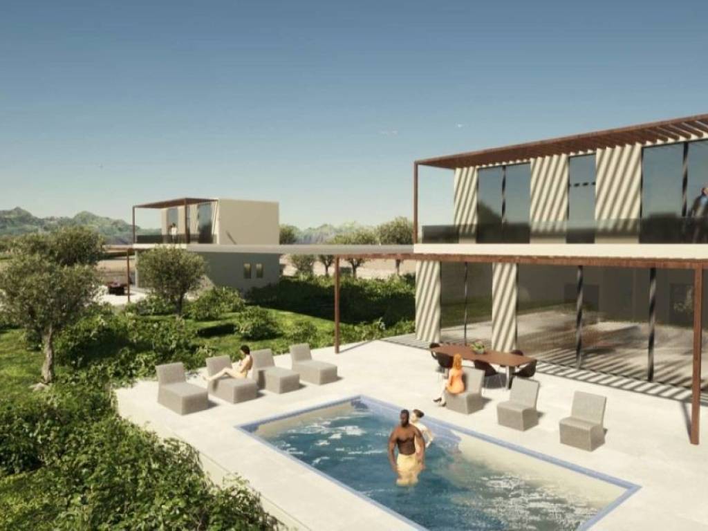 Two luxury maisonettes of 150 sq.m. each are offered for sale, with delivery on 1/2/2027, set on a total plot of 6,000 sq.m. with 3,000 sq.m.allocated to each maisonette.They are located in the area of Akrotiri – Aroni, in a quiet setting with easy access to key destinations, situated 20 km from Seitan Limania (25’), 12 km from Stavros (15’), 15 km from the Holy Trinity Monastery (10’) and 13 km from Chania city center (15’). Each maisonette is developed on two levels and features on the ground floor an elegant open-plan layout with a living room, dining area and a fully equipped kitchen, with large openings that offer direct connection to the outdoor area. The same level includes a master bedroom with an en-suite bathroom and built-in wardrobes, as well as an additional bathroom. The outdoor space includes a private 30 sq.m. pool, a covered dining area and a designated BBQ area, while each maisonette also provides two private parking spaces. The first floor comprises two additional bedrooms, each with its own bathroom, wardrobes, air-conditioning system (fan coil or split) and high-performance glazing with thermal break and electric shutters. This level also offers a large private balcony with unobstructed views. The two maisonettes are identical in design and specifications, constructed with high-quality materials, making them ideal either for private residence or as a valuable investment opportunity in an area of high demand.