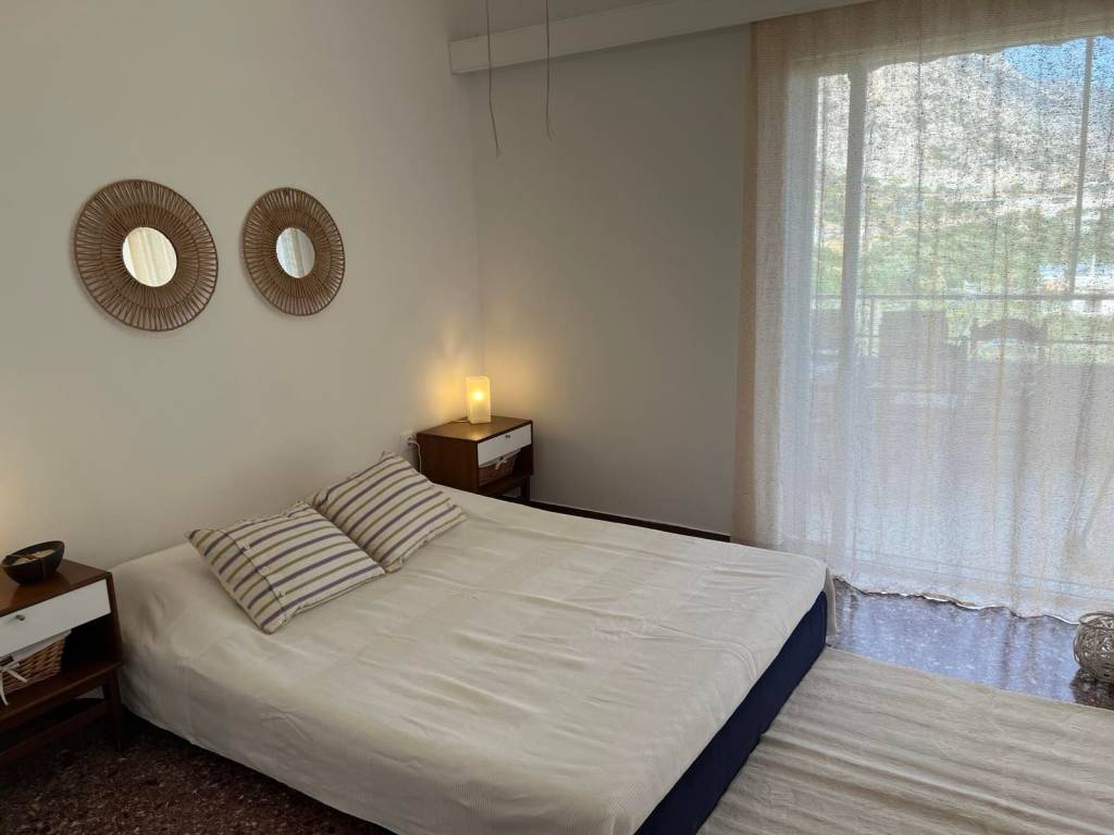 Kineta – Furnished 51sq.m. Apartment with Panoramic Sea View – 250m from the Beach A bright, airy, and fully furnished 2nd-floor apartment (with elevator access) in Kineta. Perfectly situated just 250 meters from the beach, the property offers unobstructed sea views from every room. Layout & Amenities: Bedroom: Includes a double bed and a ceiling fan. Living Room: Features a 3-seater sofa, a single sofa-bed, a dining area, and air conditioning (A/C). Kitchen & Bath: Fully independent kitchen and a bathroom equipped with a washing machine. Heating/Cooling: A/C in the living room, ceiling fan in the bedroom, and electric radiators for heating. Outdoor Spaces: A large main veranda with stunning sea views and a second small balcony at the entrance. Parking: Includes a parking spot in the building’s open-air lot. Rental Options & Rates: Annual Lease (Monthly): €400 / month. Seasonal Lease (May – October): €900 / month. An ideal choice for a permanent residence or a holiday getaway in one of Attica’s most beautiful seaside areas. Contact Info: (+30) 6944314217 / (+30) 6945360836