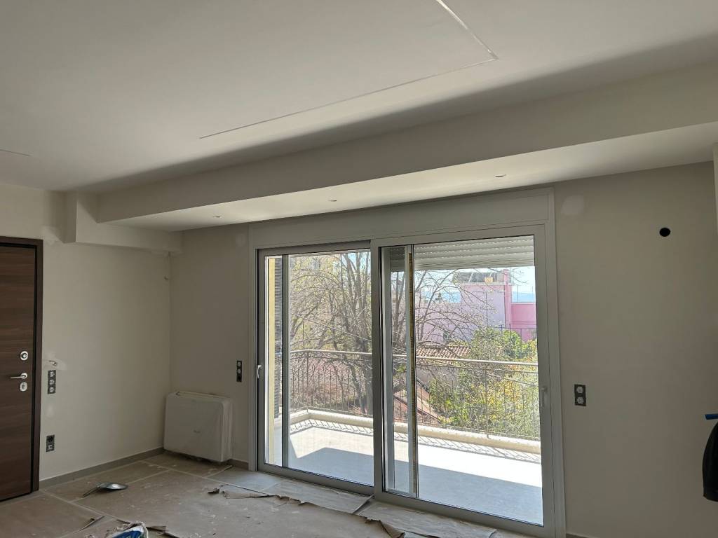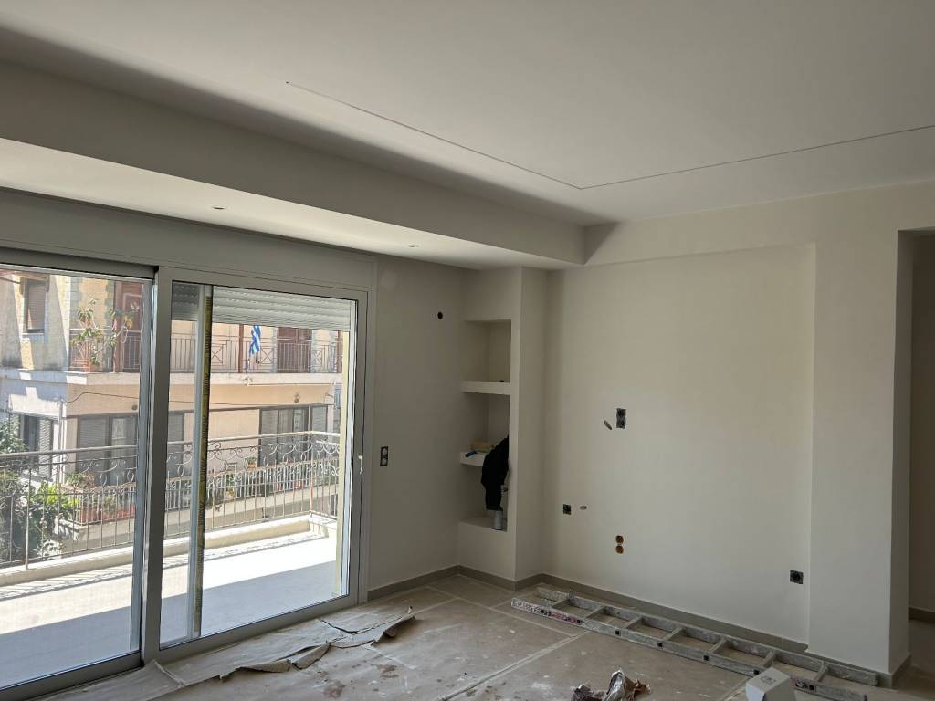 Νεόδμητο διαμέρισμα 68 τ.μ., διαμπερές, δύο υπνοδωμάτια, σαλόνι-κουζίνα, μπάνιο με εντοιχισμένη στήλη ντουζ και βρύση, ενεργειακά κουφώματα αλουμινίου, αντλία θερμότητας ψύξη-θέρμανσης με σώματα fan coil, σύνθεση τηλεόρασης με ενσωματωμένο ηλεκτρικό τζάκι, θερμοπρόσοψη, ηλιακός θερμοσίφωνος, πάρκινγκ για μεσαίου μεγέθους αυτοκίνητο,δίπλα από νηπιαγωγείο-γυμνάσιο-λύκειο, υπό κατασκευή, διαθέσιμο από ***/*******.
