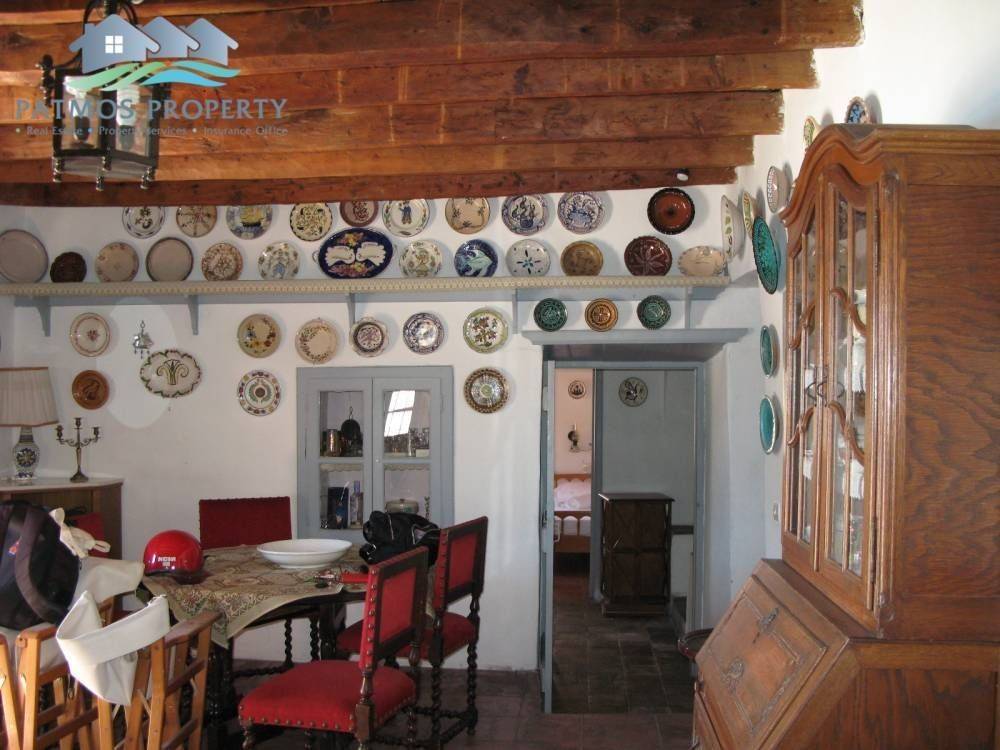 In an incredible location, in front of the beach of Agios Theologos, very close to the square of Skala, with an amazing view, is this traditional Patmian house.