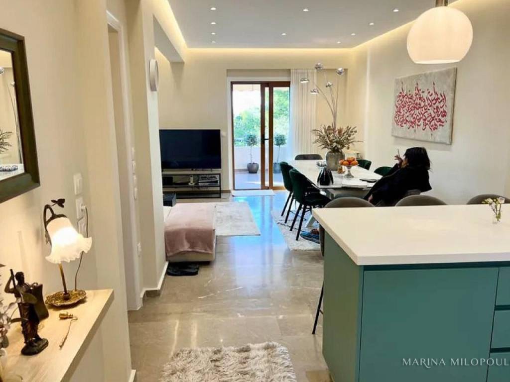 VOULA-Pigadakia, a renovated, 1st floor apartment, 90sqm. West oriantation. It consists of a reception-dining area, open plan kitchen with dish washer, 2 bedrooms, 1 bathroom, large veranda with awnings and some sea view. It features a security door, double glazing, autonomus oil heating, 3 A/Cs, electric water heater, parking space in the yard, elevator accessible with 5 steps. It is part of a 3-storey building, in a quiet street, 1,2 km from the organized beach of Mikro Kavouri, 1.5 km from the center of Voula with restaurants-shops, 3,3 km from Vouliagmeni and 19 km from Athens airport.