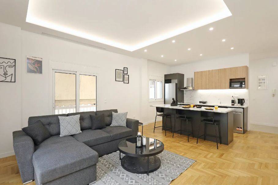 Available for rent: Renovated apartment of 75 sq.m., on the 4th floor, located in Nea Smyrni – Chrysaki. The property, renovated in 2025, consists of two bedrooms (one master), one bathroom, a kitchen, and a living room, offering a comfortable and functional layout. It features autonomous heating with electricity, air conditioning, awnings, elevator, electrical appliances, security door, aluminum frames with double glazing, and flooring made of tiles and wood. The apartment is painted, furnished, corner, front-facing, bright, and luxurious, with a southwest orientation and city views. It is ideally located close to public transport, supermarkets, shops, dining options, and entertainment venues, making it an excellent choice for comfortable and high-quality living. The indicated location is approximate. For more information or to schedule a visit: KOSMOS REAL ESTATE Contact person: Kosmopoulos Alexis – 6986109593 info@kosmosrealestate.gr www.kosmosrealestate.gr