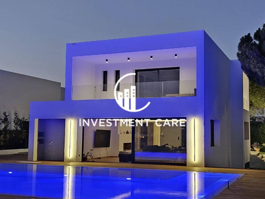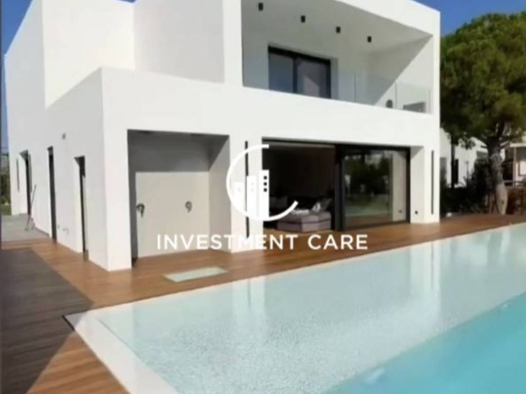 In a very nice location in Varkiza, a unique newly built minimal aesthetic detached house of 450sqm, 3 levels on a plot of 750sqm, 800 meters from the beach of Varkiza. On the ground floor it consists of a comfortable living room with an energy fireplace, overlooking the wonderful garden and the pool, a kitchen and a guest toilet. On the 1st floor it consists of 3 bedrooms with en suite bathrooms and one of the 3 with a walk in closet. In the basement it consists of a comfortable apartment with a living room, kitchen and 2 bedrooms, with its own entrance and terrace, while there is also a 45 sq. . All levels are connected by an elevator. The outside area consists of a fantastic terrace with iroko decking with a heated pool and jacuzzi, also heated by the heat pump, a beautiful garden with lawn and planted trees around the perimeter with an iroko fence that will offer complete privacy, the entire architectural creation has been curated by a well-known architectural office with an emphasis on every detail. It has heating with a heat pump, a high-performance energy fireplace, air conditioners with hidden ducts. The cooling heating engineering study has been designed with absolute autonomy in each source in mind. The residence can be heated either with the pump, or with air conditioners, or with the energy fireplace. There is a smart home installation with the possibility of adding features depending on the buyer's needs thanks to the hidden communication channel of the entire installation and of course the control room. All the materials of the house are the most luxurious and special there is. It has oak floors throughout the ground floor and the 1st floor as well as the stairs. Kitchens with very modern lines with leather worktops. Aluminum frames with energy glass, with hidden heavy-duty rollers, beautiful and functional design in the lighting of every place, from the living room to the garage. Finally, it has a 2-seater garage with very comfortable access without any slope. Of course, the outdoor lighting is the one that will fascinate every visitor. The residence has just been completed and has not been inhabited, while it can also be given fully equipped and furnished, turnkey, but at an additional cost. Price €2,000,000