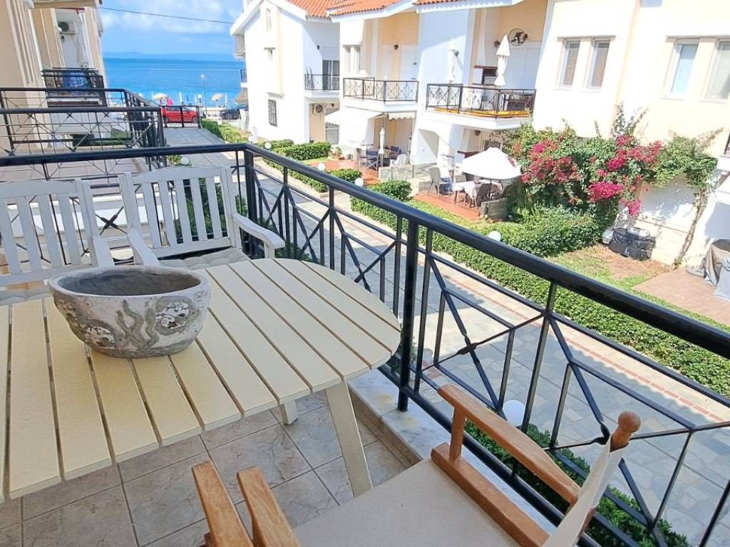 Private listing. No broker fees. Very beautiful apartment for rent, first on the beach with an unlimited view of the sea of the Toroneos Gulf. The rental price is from 120 to 152 € per day. The price scales depending on the number of people and the month of booking. Minimum booking 7 nights. Fully equipped with all household appliances. Kitchen, refrigerator, freezer, vacuum cleaner etc. It has a large TV. It has air conditioning. Washing machine. It has two bedrooms. The second bedroom is located on the upper floor. An additional single bed for a child or an adult is also available. There are 5 sleeping places in total. There is a sofa in the living room. The balcony is one of the most beautiful in Toroni with a large dining table and 5 dining places. Unlimited view of the sea. The apartment is located in the most beautiful settlement (Complex ***/*******;DIMITRA ***/*******;of Toroni Halkidiki. The famous beach of Toroni is just 40 meters away!!! Rented for a minimum of 7 nights