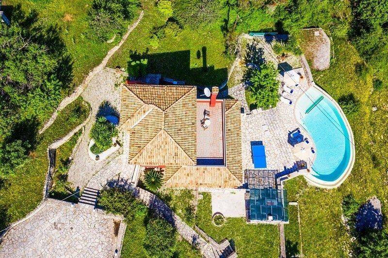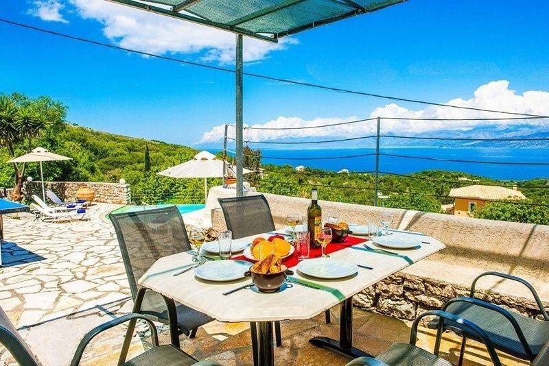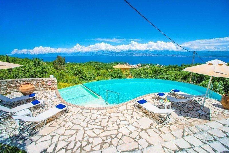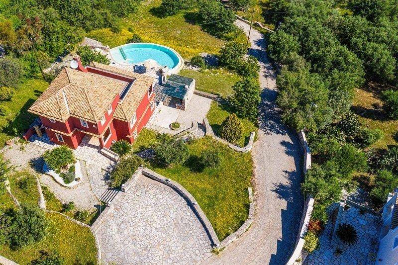 For Sale Villa, Kassiopi 230sq.m ,Ground floor , 5 rooms ,3 level/s ,3 Bedroom/s ,3 bath/s , 1 WC , 3 parking , 2008 built year , features: New Development, AirConditioning, Security door, Balconies, Inner stairs, Cottage, Stadium, Trees, Swimming pool, Furnishing, BBQ, Double Glazed Windows, Boiler, Fireplace, Independent 1 fireplace/s , view :Panoramic ,  price: 850.000€