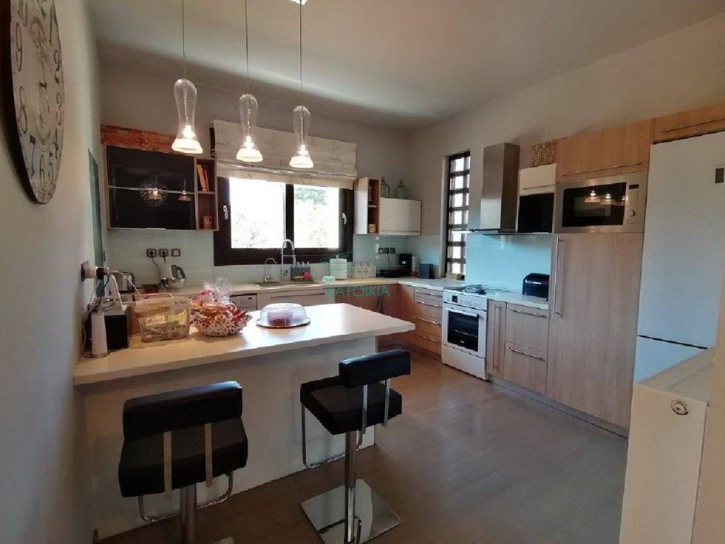 In an excellent location in Kantza, a detached house for sale with a total area of 280 m2, of which 250 m2 are the net habitable spaces, within a plot of 805 m2, with a remaining building factor for another 200 m2. The residence is surrounded by an excellent garden and is developed on 3 levels covered by an elevator. On the 1st level (ground floor) there is an independent apartment of 90 m2 with a living room with fireplace, an open plan kitchen, 1 bedroom and a bathroom. It has a view and access to the garden and is particularly bright. On the 2nd + 3rd level there is a residence consisting of reception areas with a fireplace, a spacious kitchen, WC, 2 bedrooms, a dressing room and a bathroom. All areas have access to terraces. It has storage spaces and closed parking for one car while another 2-3 cars can be parked on the plot area. Sheltered outdoor space in the garden. Built in 1988, fully renovated in 2018 in plumbing, electrical, external and internal frames, kitchen, bathrooms, wardrobes and floors. Wooden floors in all areas except the ground floor, alarm, security door, elevator, autonomous petrol heating. Possibility of creating a swimming pool. With very good access to shopping areas, Lavriou Avenue, Attica highway, the international airport, as well as to private schools like the French and German school. Price 800.000€, code 52496