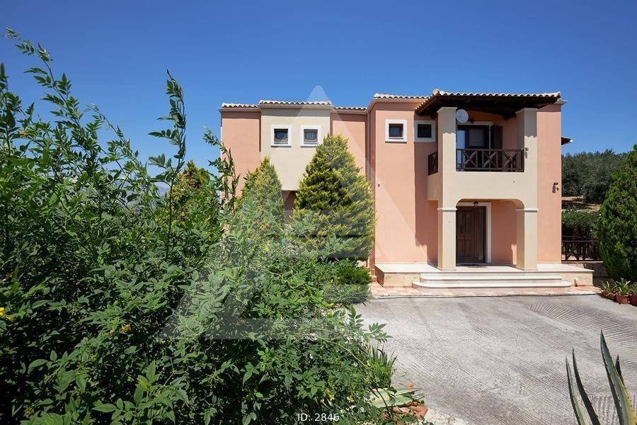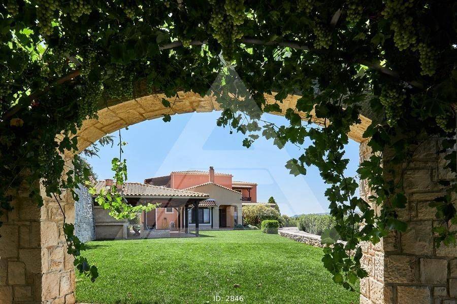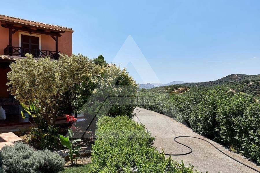 Iraklio (Iraklio) - Detached House 311sqm plot size 6700sqm, bedrooms 4, levels 3, basement - ground floor - 1st, excellent condition, year built 2006, energy class under issuance, 2 living rooms, kitchen, 5 bathrooms, heating type: autonomous, heating medium oil, air condition, parking, quiet, view unobstructed, storage space, solar heater, boiler, fireplace, large balconies, balcony size 120sqm, garden, built in appliances, frames aluminum, double glazed windows, door screen, floor type ceramic tiles, office, alarm, video doorbell, luxurious, internal staircase, barbeque, jacuzzi, cloakroom, internet, lightning conductor, residential zone, access from asphalt. Unique luxury residence in Athanatoi-Heraklion-Crete. The interior is decorated with stone walls and a stone arch. It has a basement of 52m2. It offers an amazing view of Psiloritis and the sea. There are olive and fruit trees inside the plot. The house has night zone electricity and 2 water tanks for irrigation and water supply. Sold fully furnished.