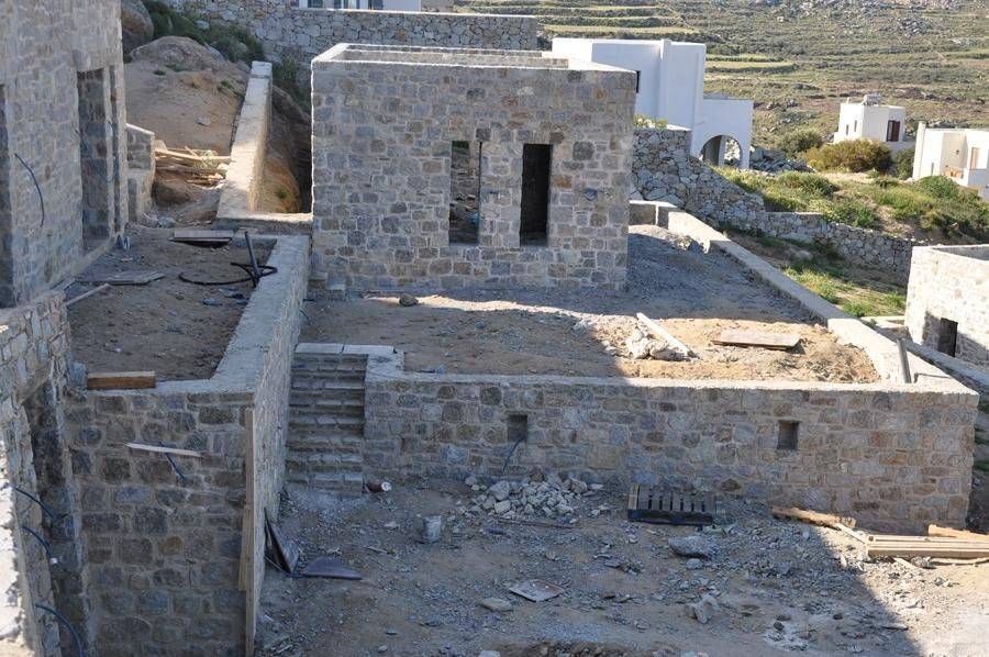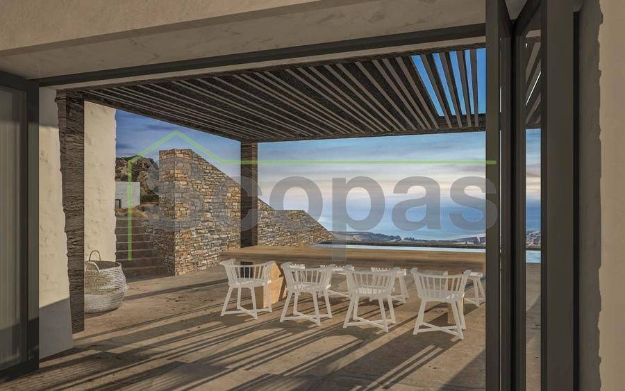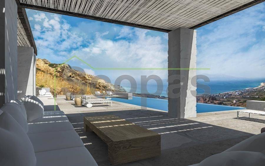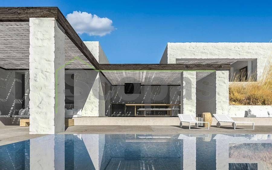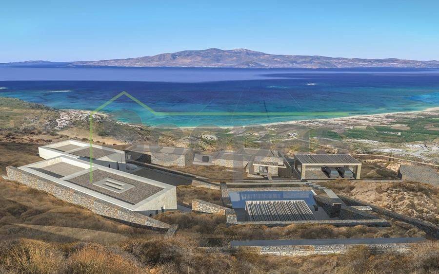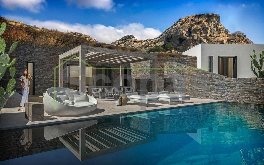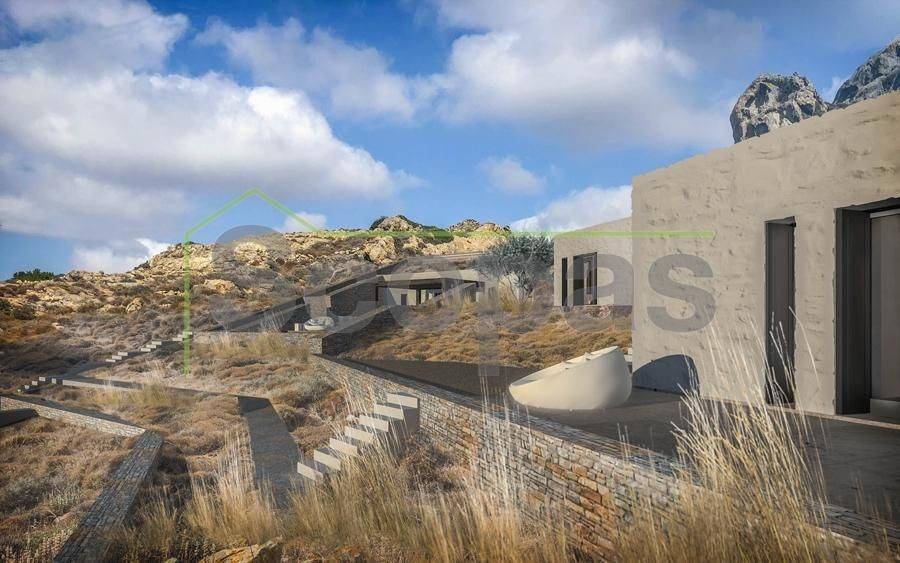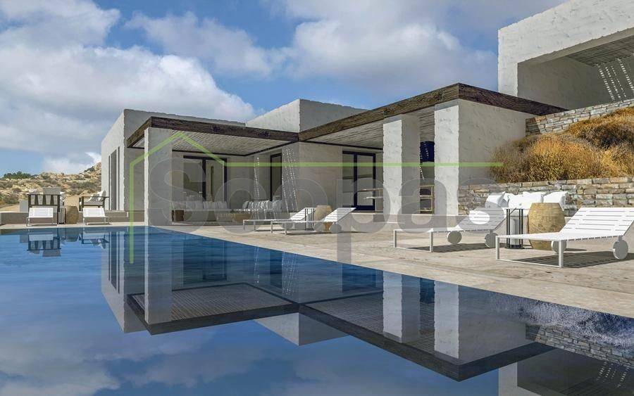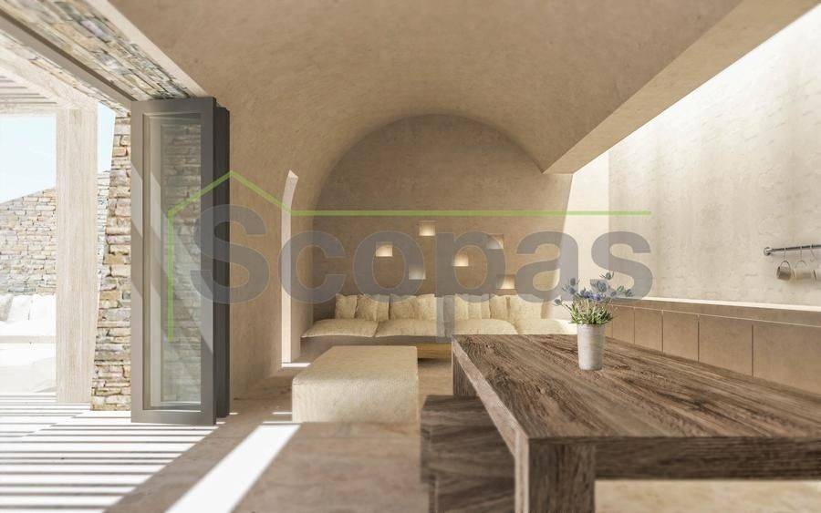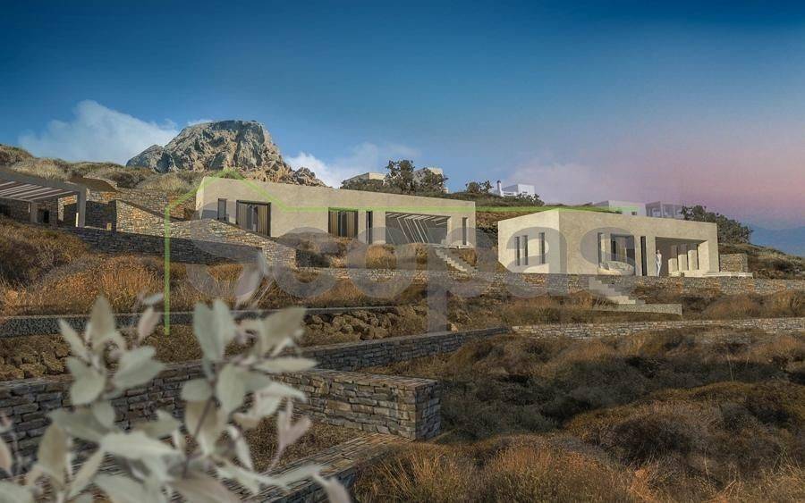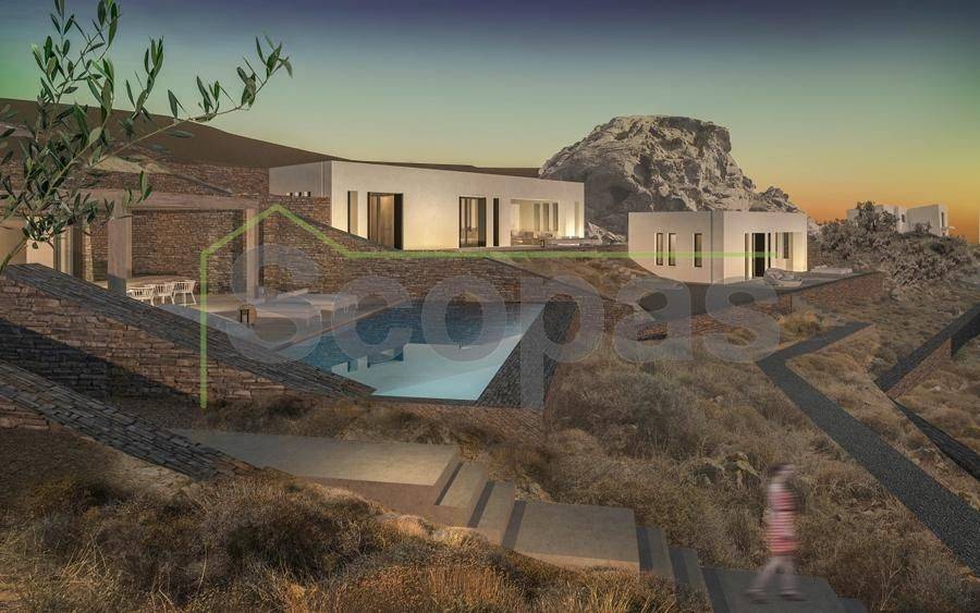 Villa for sale by SCOPAS REAL ESTATE & CONSTRUCTION. Located in western Naxos, near the area of Plaka. Luxury in-cave villa of 190m2 under construction on a plot of 6500m2. More specifically, there are 2 villas that are being sold separately. The price refers to one residence. Each villa has 3 bedrooms (1 master), 3 bathrooms, living room, kitchen, interior staircase, cloakroom, parking, its own courtyard and swimming pool. The houses will be constructed in such way that each will have their own outdoor spaces and privacy. Western orientation with 180 degree sea views towards the island of Paros. All networks available. Access by dirt road. 11 km from the port and Chora of Naxos 9 km from Naxos airport 1000 km from the sea