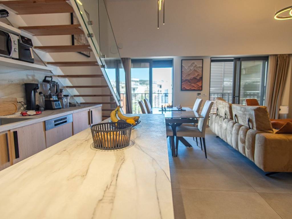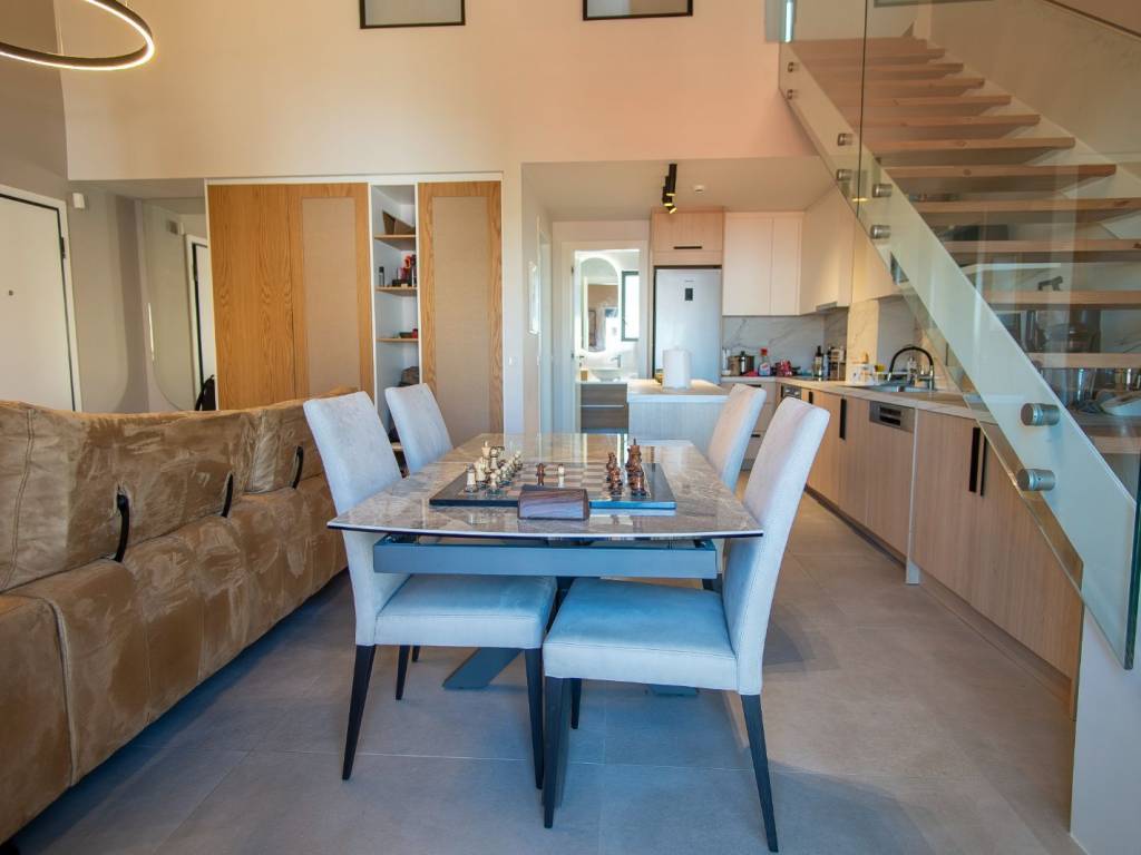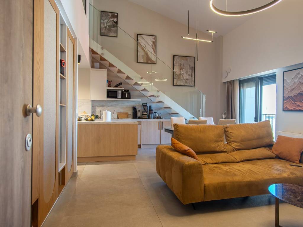 Stunning top-floor maisonette in the heart of Chania, delivered fully furnished and turnkey — move in or start earning from day one. This brand-new (2023) duplex apartment sits on the 4th and final floor of a modern five-storey residential building, located at a quiet corner in central Chania. The two-level layout offers the privacy and feel of a home, connected by an elegant internal staircase — 60 m² of open living on the main floor and 32 m² of loft space above. Step onto the balcony and enjoy breathtaking views of Chania's skyline, the iconic Holy Temple of Apostles Peter & Paul, and a partial sea view that catches the light of the Cretan coast. With no construction zones surrounding the property, these views are permanently protected. Property Highlights: Top-floor maisonette (4th floor + loft), 111.70 m² gross Turnkey — fully furnished and equipped, ready to live or rent Private parking space (15.60 m²) — a rare find in central Chania Private basement storage room (17.56 m²) Modern building with elevator and pilotis Autonomous heating & cooling via energy-efficient A/C heat pumps Additional balcony with unobstructed downtown and partial sea views Built in 2023 to the latest energy efficiency standards The Neighbourhood: Nestled between two green parks in one of Chania's most desirable residential pockets, this address combines the best of city living with a remarkably quiet atmosphere. The vibrant Old Town, restaurants, cafés, and shops are just steps away, while the nearest beach is a leisurely 10-minute walk. Schools, supermarkets, and public transport are all within easy reach. Ideal For: Golden Visa applicants — property exceeds the €400,000 Chania threshold Holiday home seekers looking for a lock-and-leave residence in Crete Investors targeting premium short-term rental returns in Chania's booming tourism market Those seeking a permanent base in one of Greece's most liveable cities
