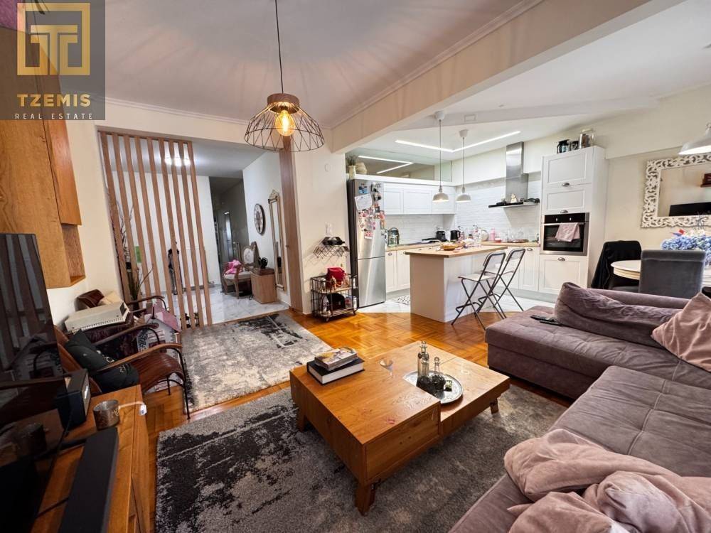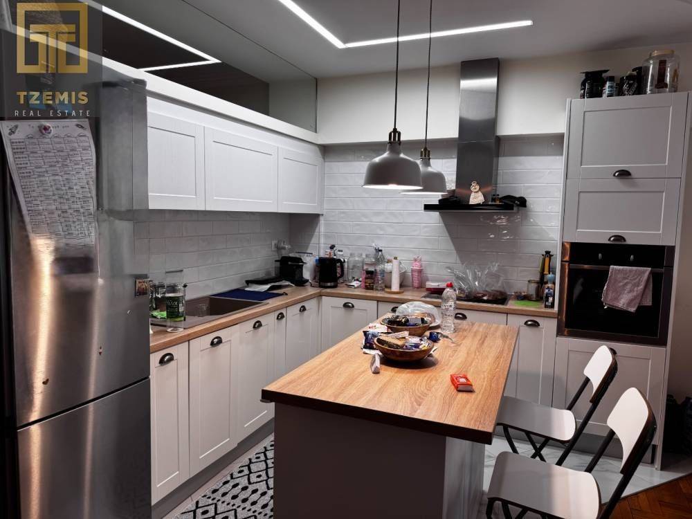 Nea Paralia – Botsari: A luxurious apartment for sale, with a total area of 110 sq.m., located on the 4th floor. It is fully renovated and furnished, offering a side sea view.