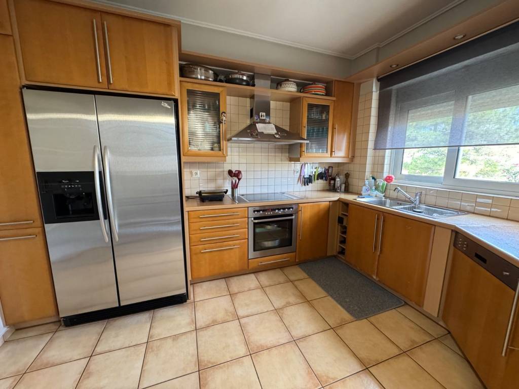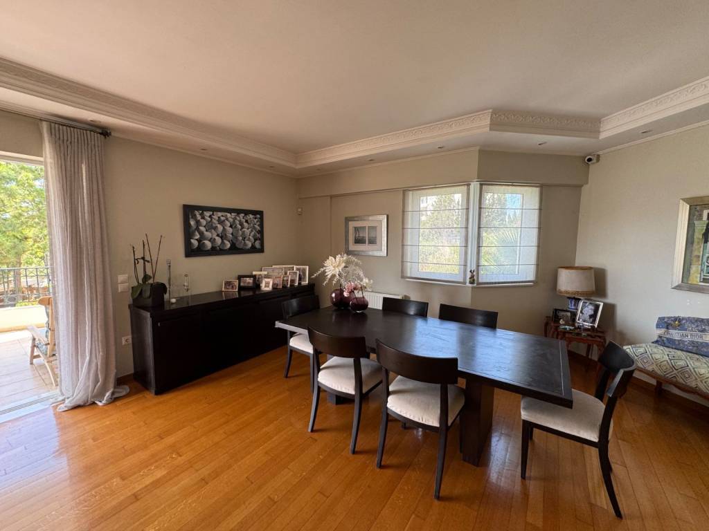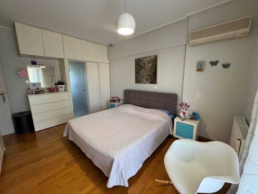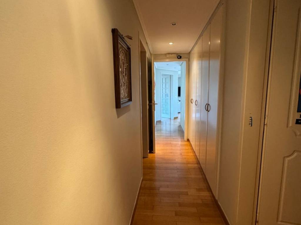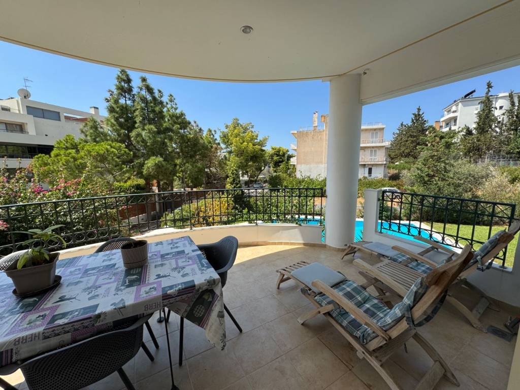 Apartment 160 sq at the first floor 3 bedrooms 2 of them master extra 4th small room next to the kitchen garage with electric car charger very big garden with very big swimming pool almost for private use very close to the beach sea view very close to Voula’s market. Independent petrol heating system, a/c, alarm very quiet location