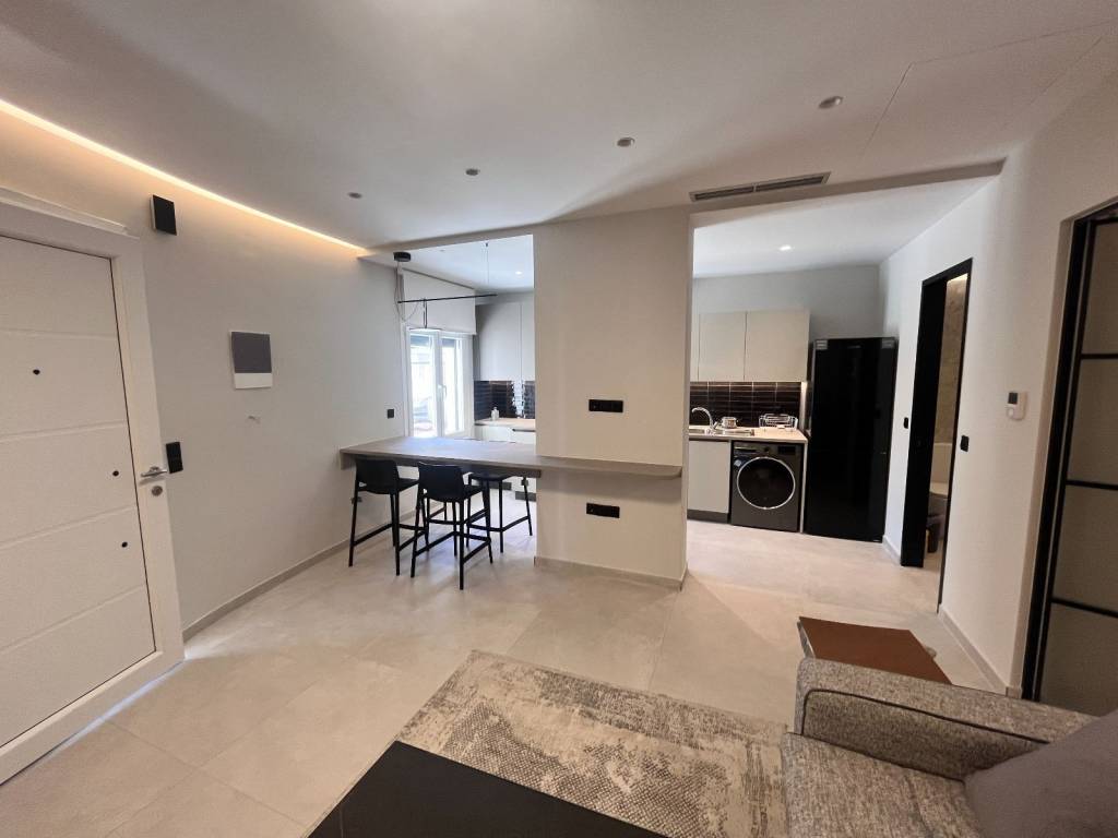 Newly built apartment in the area of Mantouki, Corfu, located just a few steps away from the sea within a modern residential complex. With a total area of 50m² this property combines elegant neoclassical architecture on the exterior with contemporary construction and interior design. The apartment offers an excellent internal layout, comprising an open-plan kitchen and living area, a spacious lounge, a comfortable bedroom, and a modern bathroom. It also includes a private storage room and an underground parking space.
